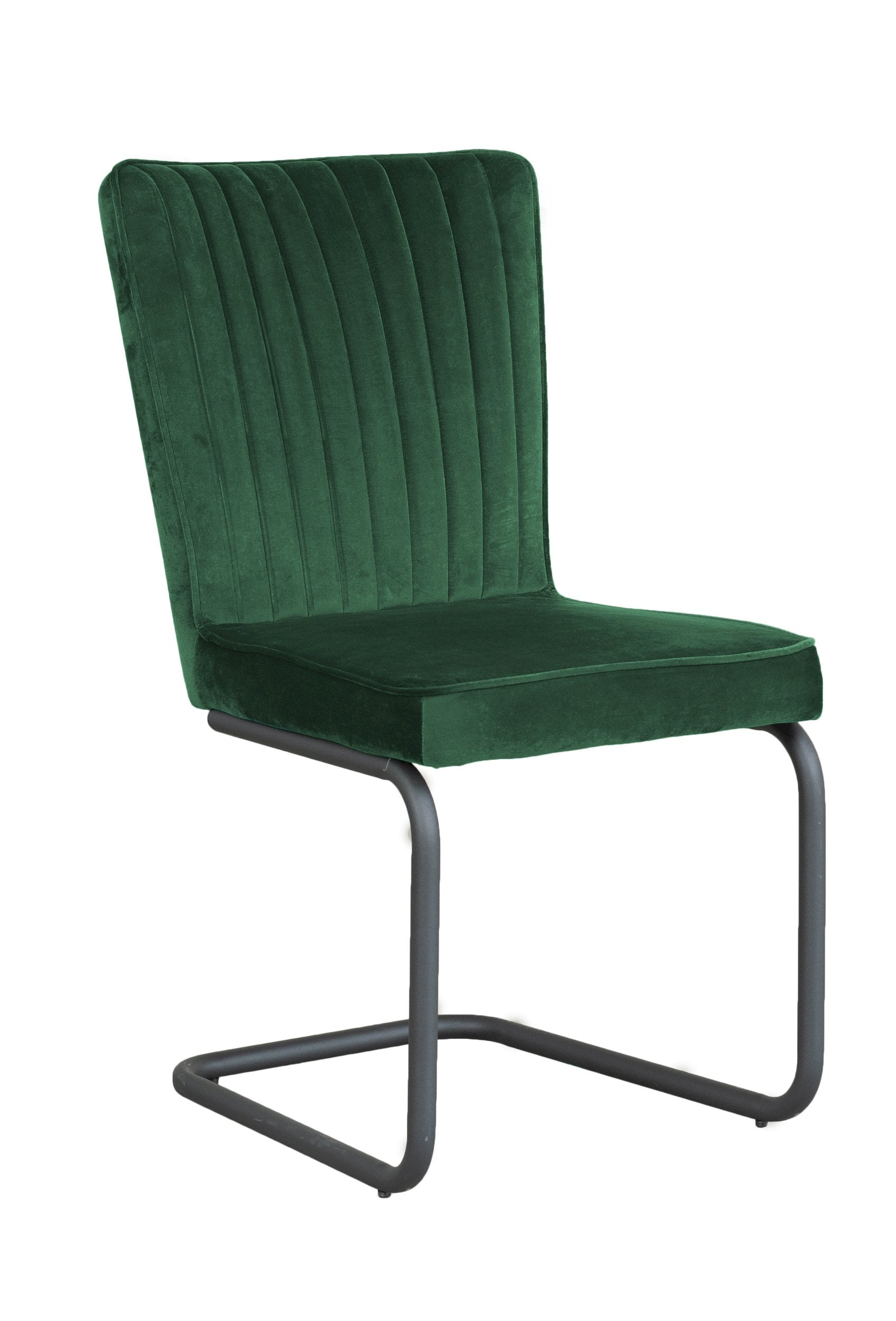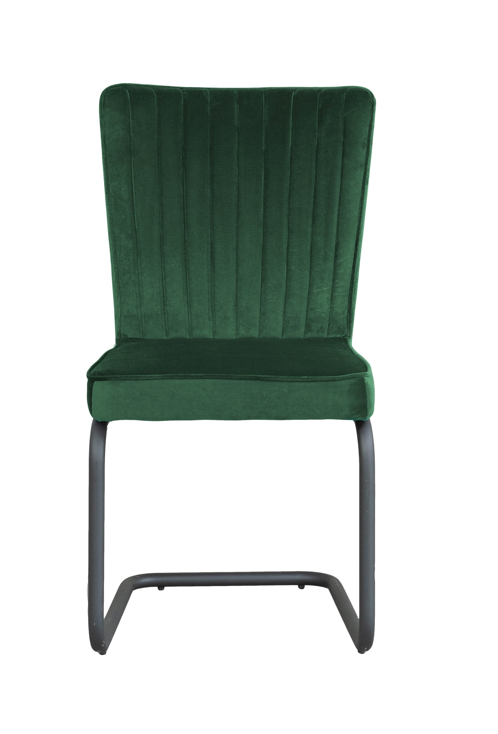 Eetkamerstoel Pallas is een trendy eetkamerstoel welke door de verschillende kleuren eenvoudig te combineren is in verschillende woonstijlen. De stoel is bekleed met velvet stof in de kleur groen en staat op een zwart gepoedercoat frame.