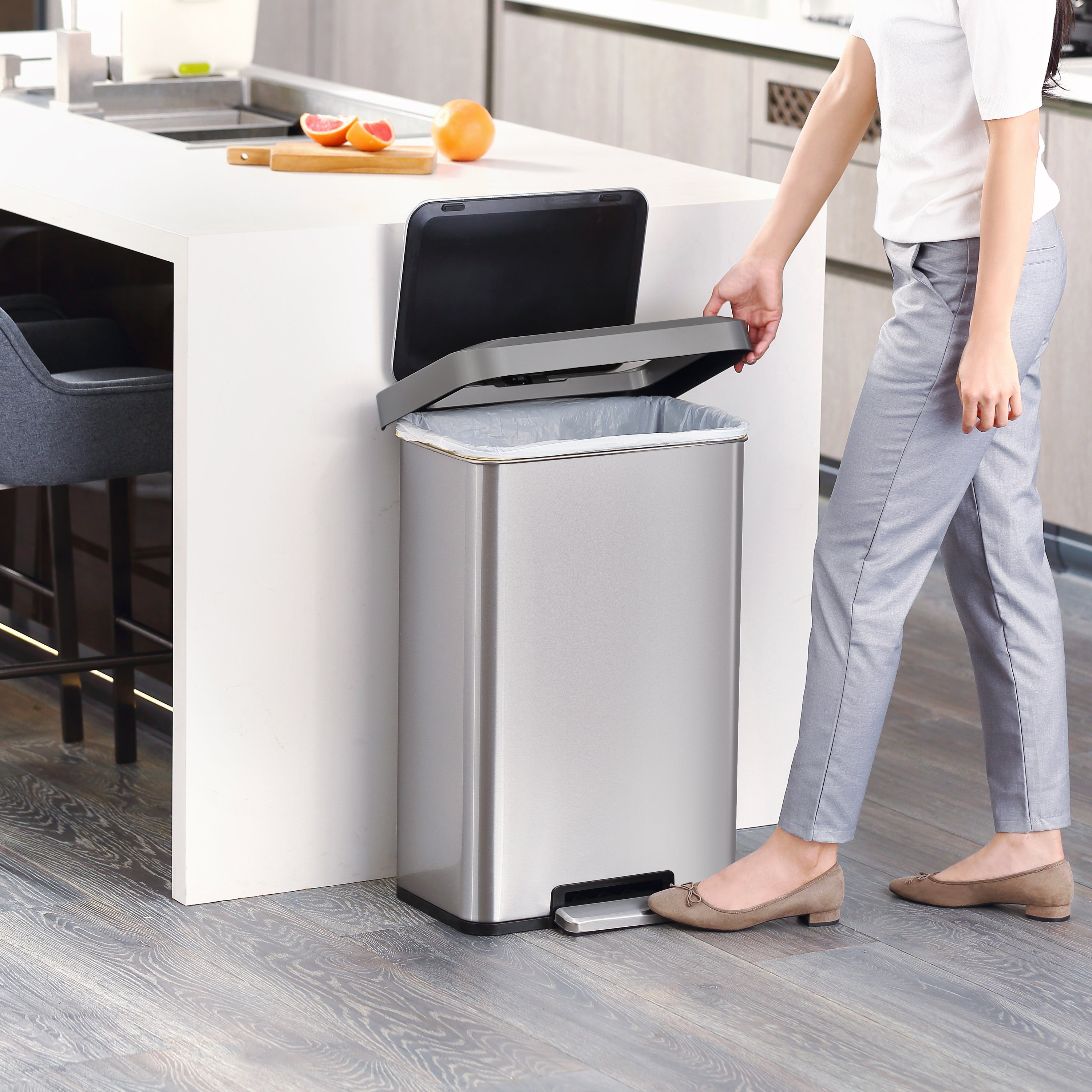 EKO Pedaalemmer Cozy 45 L matzilverkleurig