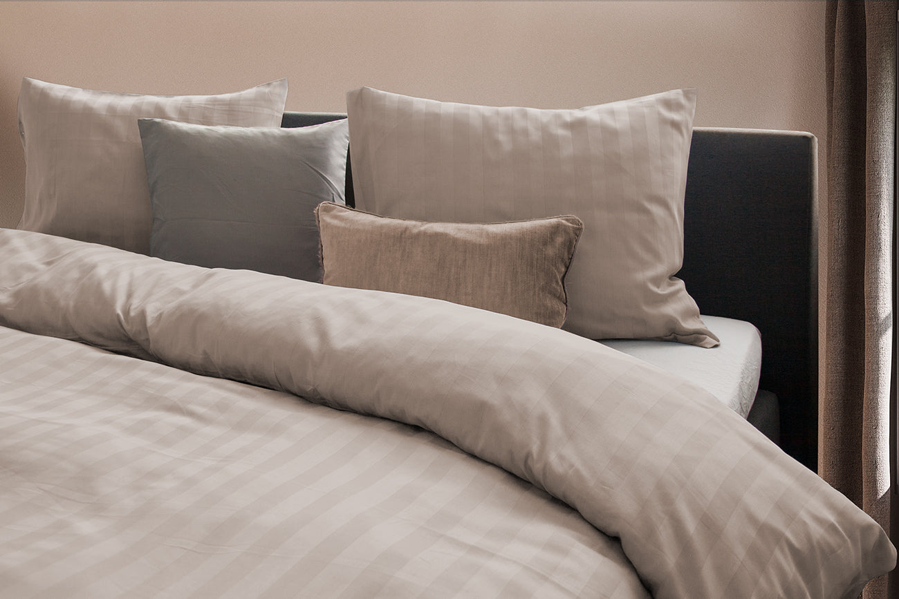 Met zijn subtiele streepmotief en verfijnde afwerking, creëert dit dekbedovertrek een stijlvolle en rustgevende sfeer. Katoensatijn staat bekend om zijn ademende en temperatuurregulerende eigenschappen, zodat jij het hele jaar door geniet van optimaal slaapcomfort. Het dekbedovertrek is beschikbaar in maar liefst 9 kleuren zodat er altijd een kleur is die perfect bij jouw interieur past.