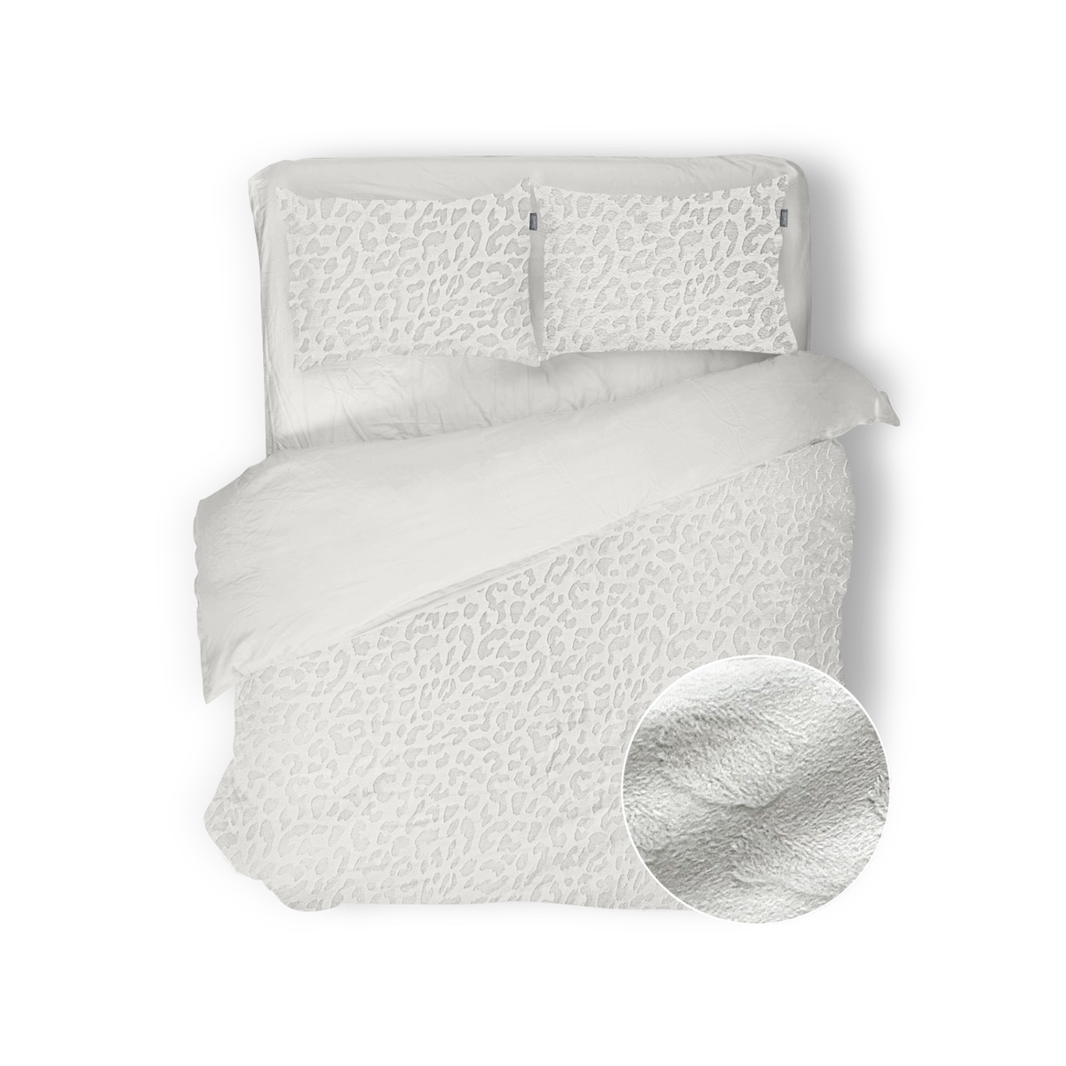 - Voorzijde: velvet micro mink met 3D embossed leopardprint
