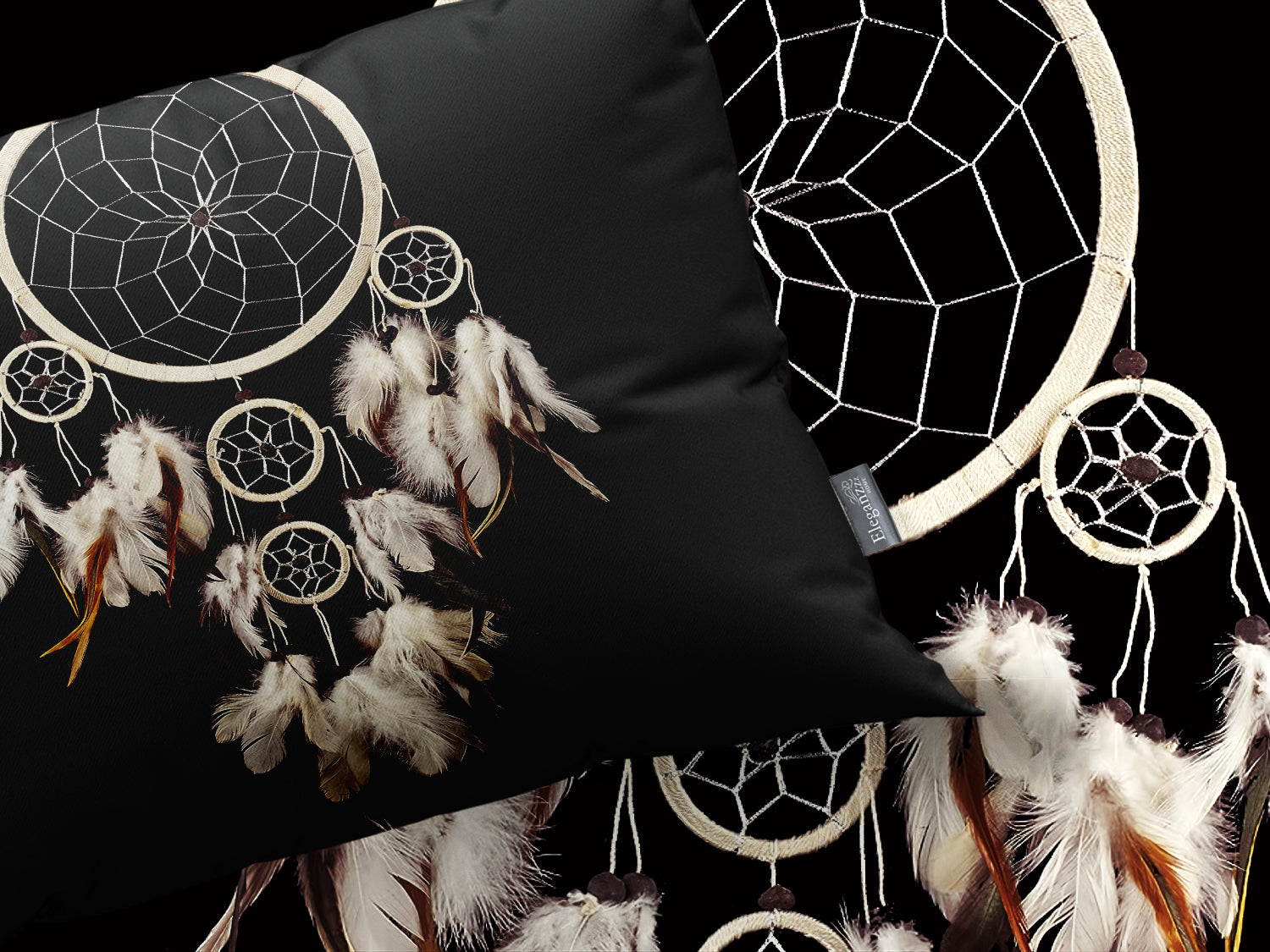 Laat je dromen vangen en laat je beschermen tegen nachtmerries door deze betoverende witte dromenvanger met delicate veren op een zwarte ondergrond.