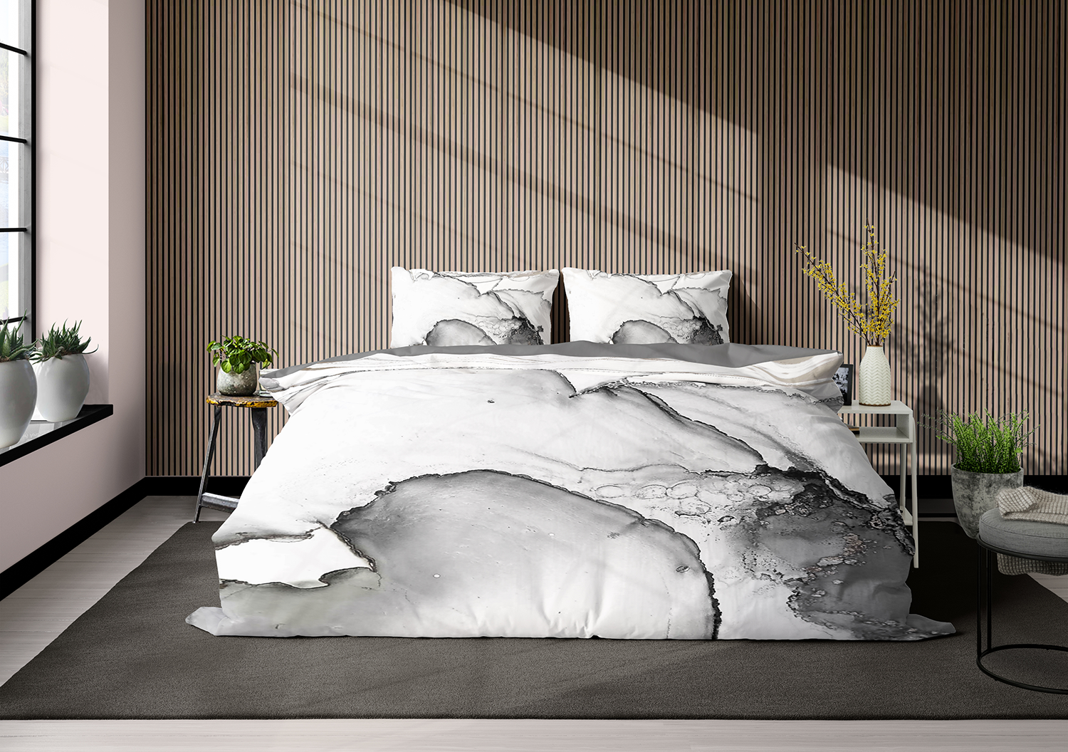 Dekbedovertrek Crystal Drops heeft een rustige uitstraling dankzij de grijze kleur en de subtiele print zorgt voor een kalme en moderne sfeer in je slaapkamer.