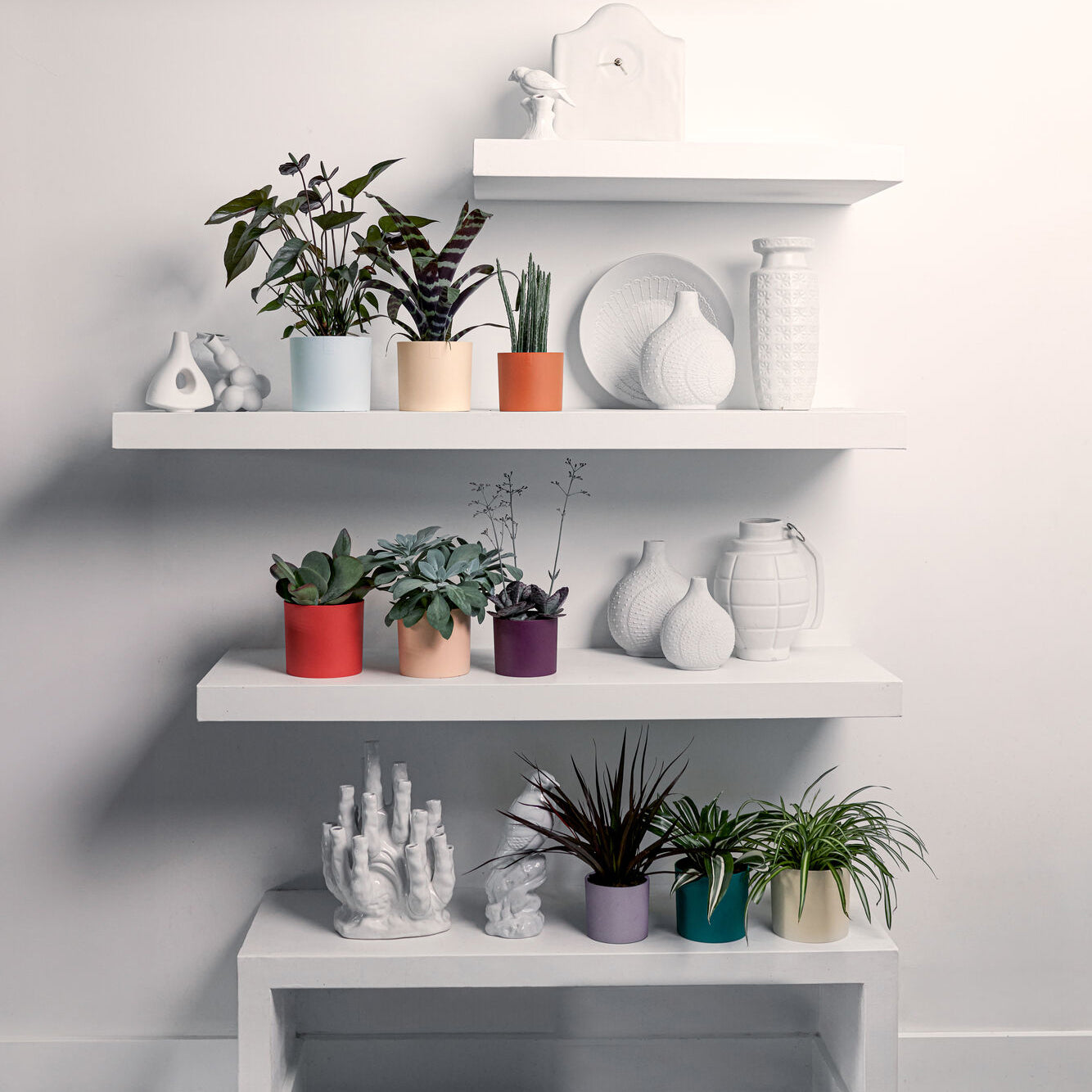 - Deze set bevat drie bloempotten in verschillende kleuren en hoogtes: 11, 13 en 14 cm