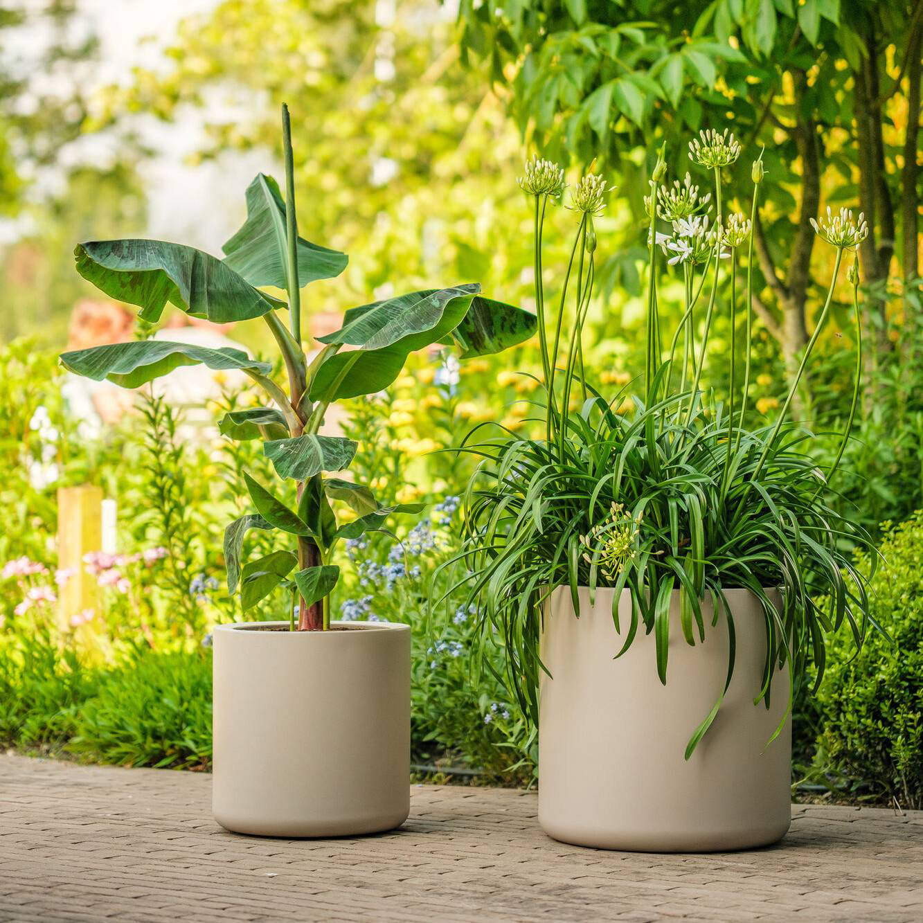 Elho Pure Cilinder Wheels 40 - Beige - L 40 x B x H 40 cm - Balkon, Binnen en Buiten - 100% gerecycled