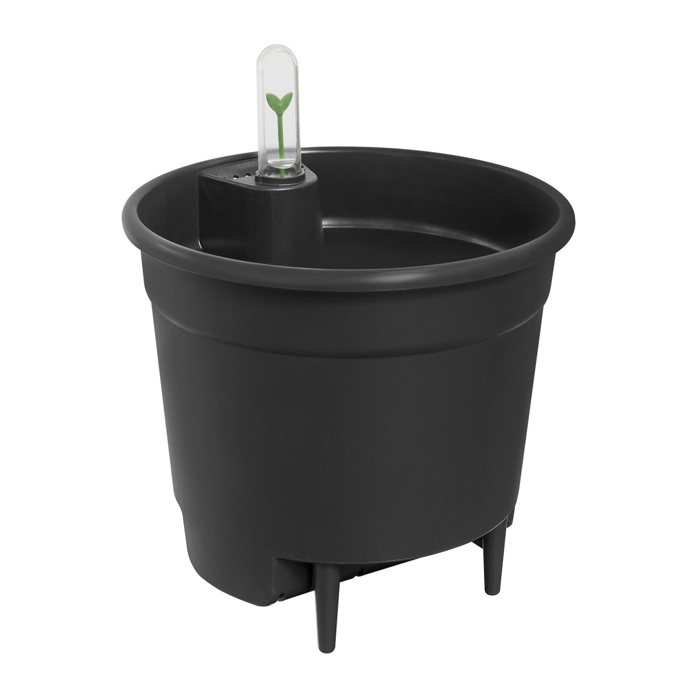 Zo werkt het Allereerst vul je de self-watering pot met aarde en een mooie plant. Daarna zet je de insert in zijn geheel in een bloempot naar wens. Hij past in de meeste elho potten en ook andere potten van bijvoorbeeld keramiek. Vervolgens vul je de insert met water waarna je plant wekenlang voor zichzelf zorgt. Handig, als je op vakantie gaat (of geen groene vingers hebt)! De watermeter geeft vanzelf aan wanneer het tijd is om water bij te vullen. Dag plantenstress!
