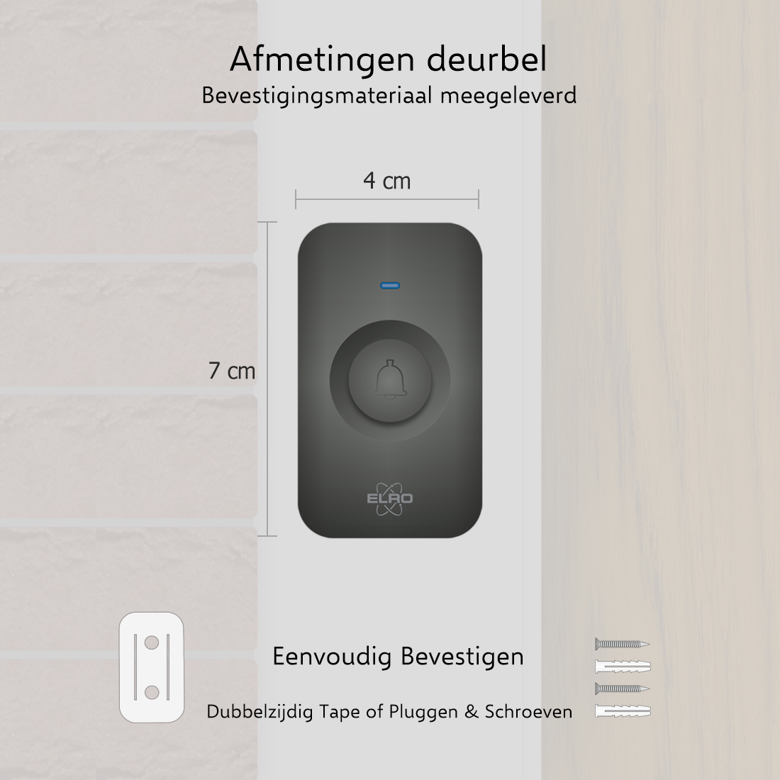 Omdat de deurbel slechts 4 cm breed is past hij makkelijk op iedere buitenpost. De drukker is gemaakt van hoogwaardige kunststof en is IP65 waterdicht. Hierdoor hoeft de deurbel niet persé onder een afdak te hangen, maar kun je hem ook met een gerust hart in de regen laten hangen.