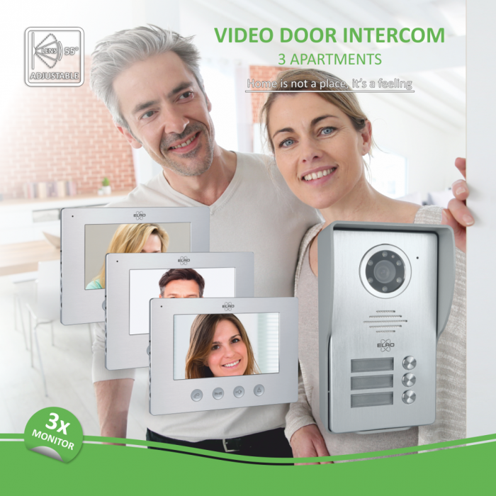 - Geschikt voor 3 appartementen met dezelfde voordeur door de drie 7 inch kleurenschermen