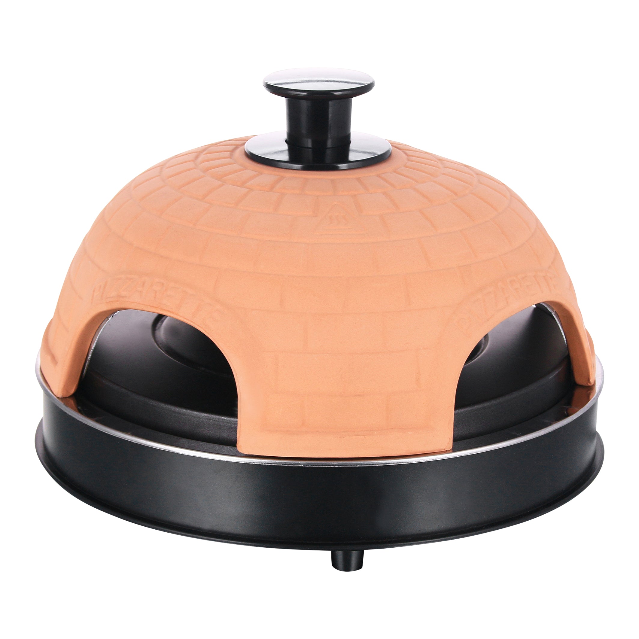 De Emerio Cooltouch pizzarette heeft een speciale koepel met ‘Cooltouch’ functie, waardoor de terracotta koepel minder snel warm wordt. Fijn als je aan het bakken gaat met kinderen. Maak één grote pizza of meerdere mini pizza’s. Beleg ze met je favoriete ingrediënten. Je kiest er zelf voor of je de mini pizza’s op de bakplaat of met de speciale spatels bakt. Binnen 5 tot 7 minuten zijn de pizza’s klaar!