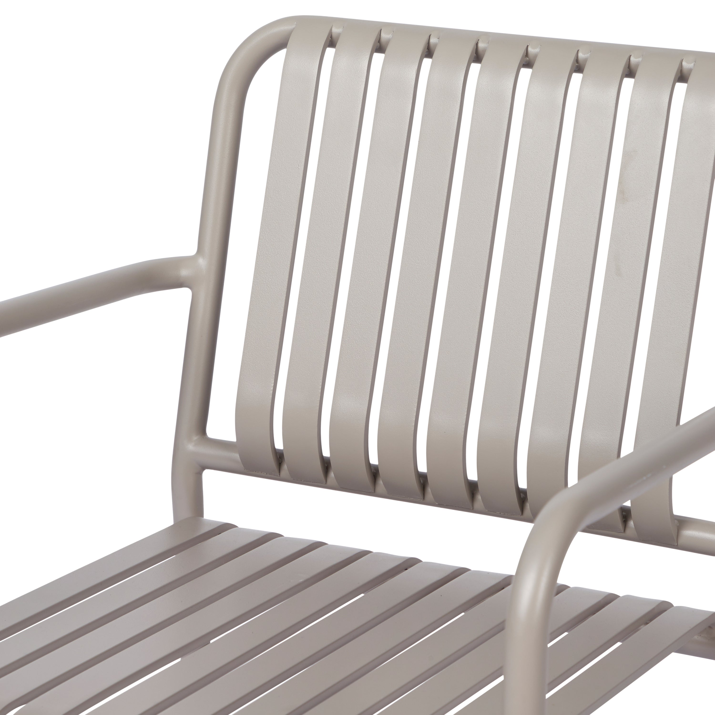 - Vormgegeven met platte latten bij de rug en zitting