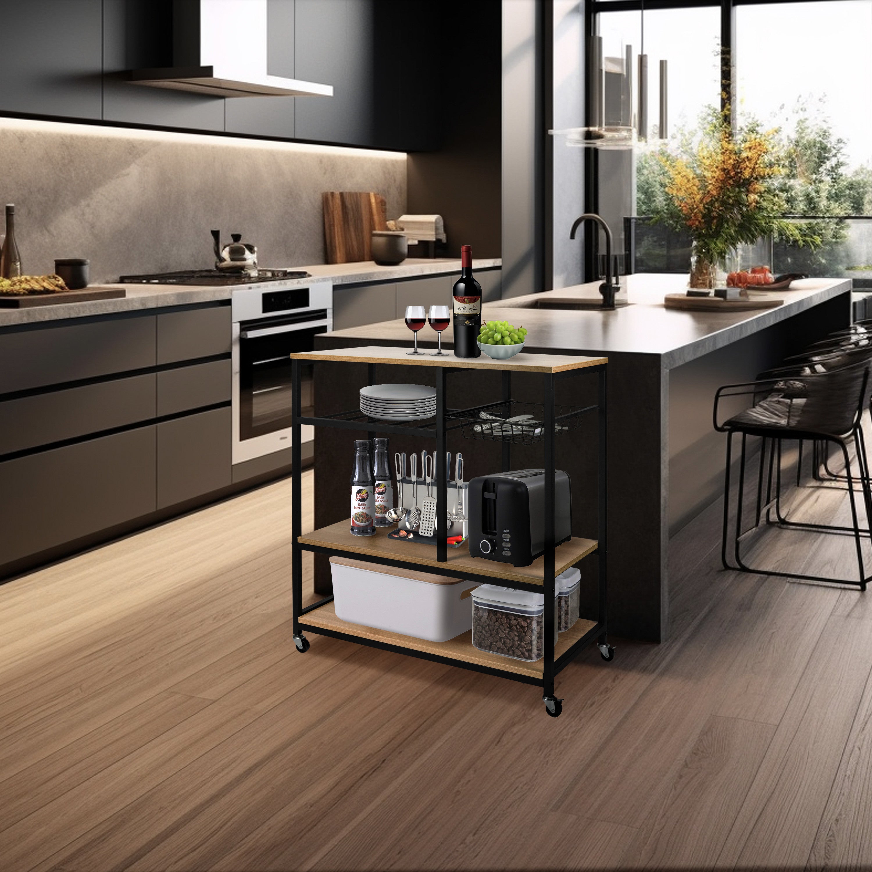 - De keukentrolley heeft 4 wieltjes waarvan 2 met rem