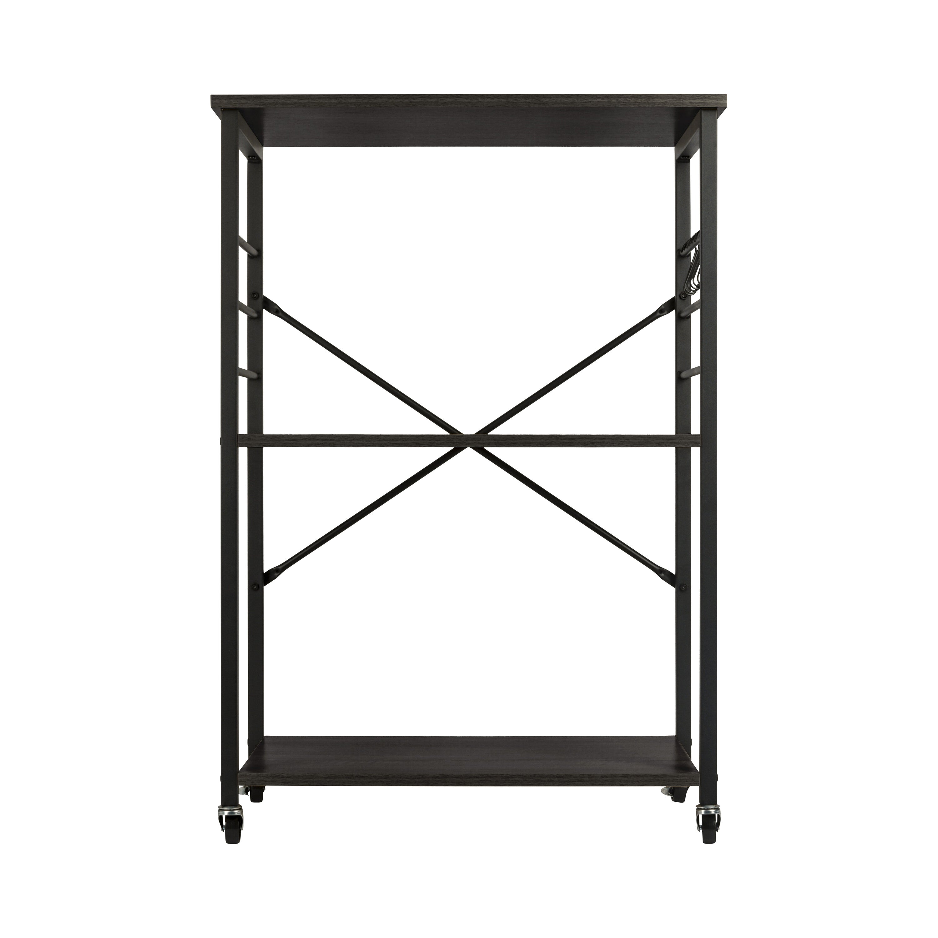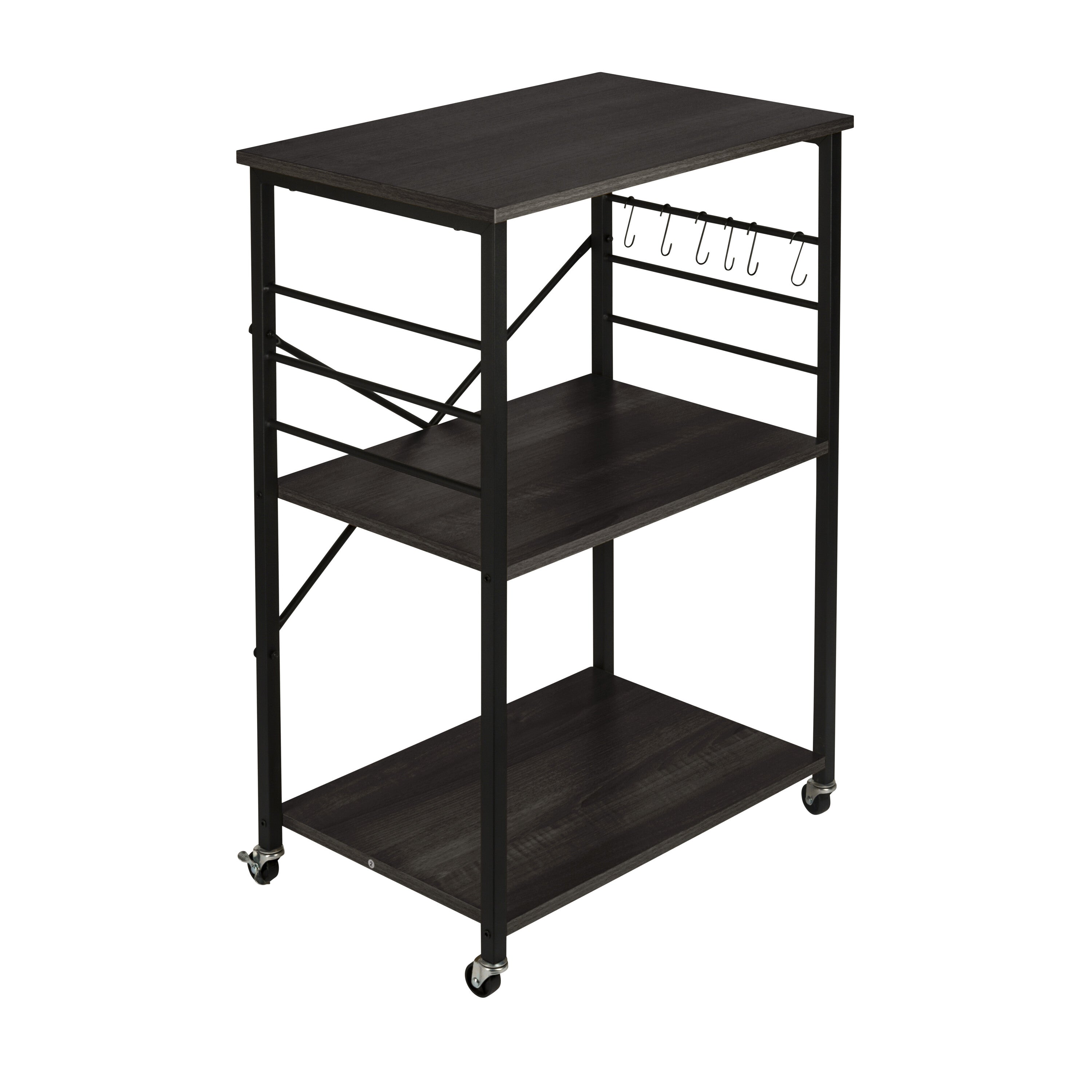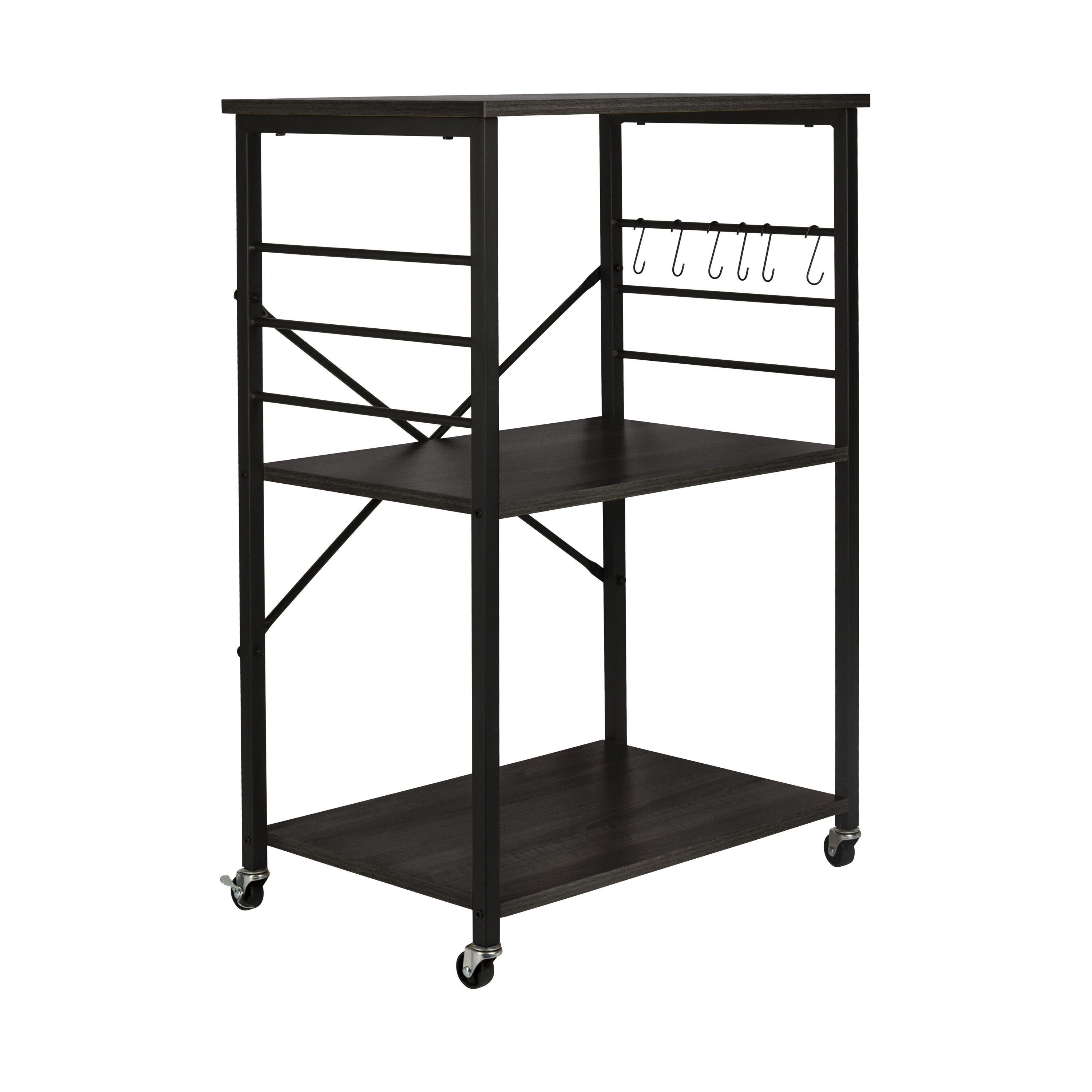 De ERRO keukentrolley is een handige en stijlvolle opbergoplossing voor elke keuken. Met drie ruime planken biedt deze serveerwagen voldoende opbergruimte voor keukengerei, ingrediënten en zelfs keukenapparaten. Dankzij de wieltjes met remfunctie verplaats je de trolley moeiteloos door de keuken, of gebruik je hem als vast keukenrek op wielen. De serveerwagen heeft een zwart metalen frame en stevige planken van spaanplaat. Voordelen: • Drie planken voor extra opbergruimte • Wieltjes met rem voor extra stabiliteit • Draagvermogen van 80 kg • Geschikt voor kleine ruimtes: B60 x D40 x H89 cm • Materiaal: spaanplaat / metaal