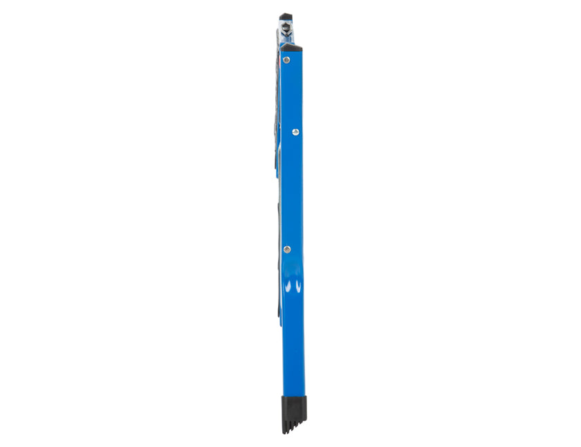 Stevige huishoudtrap van Escalo. 2 treden en eenvoudig inklapbaar. Van fraai gelakt blauw staal.