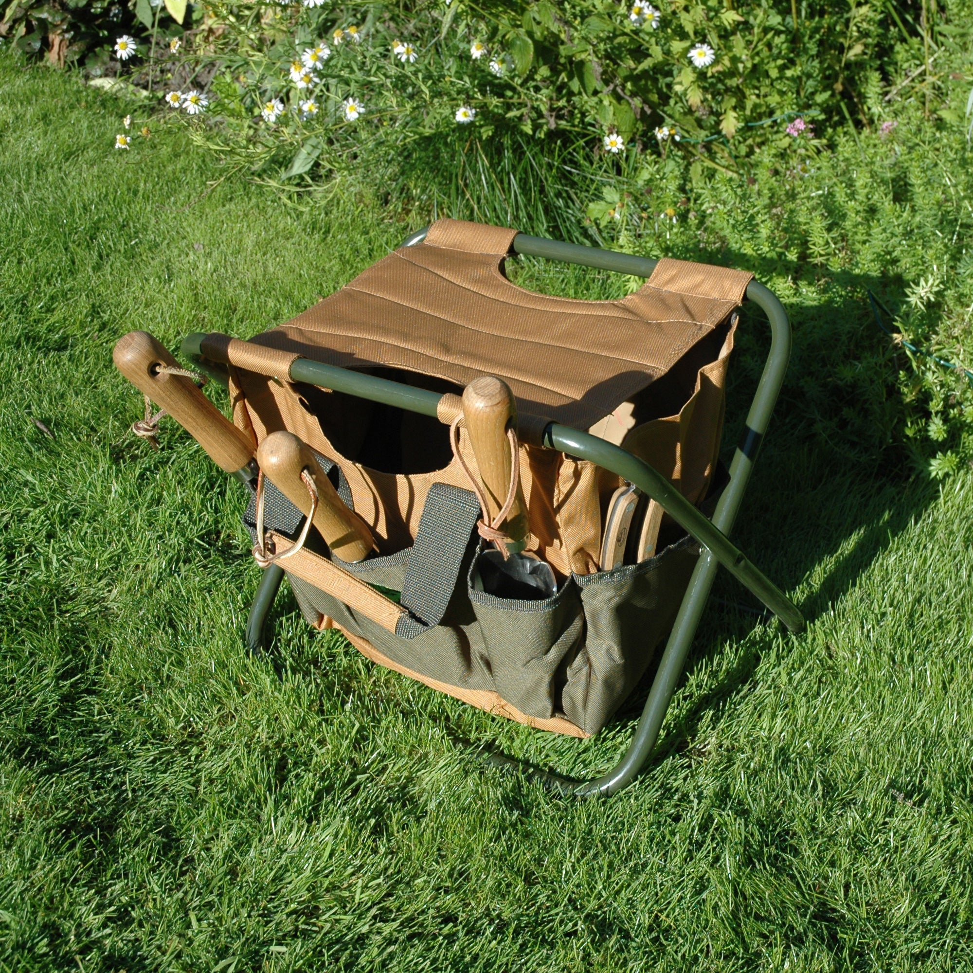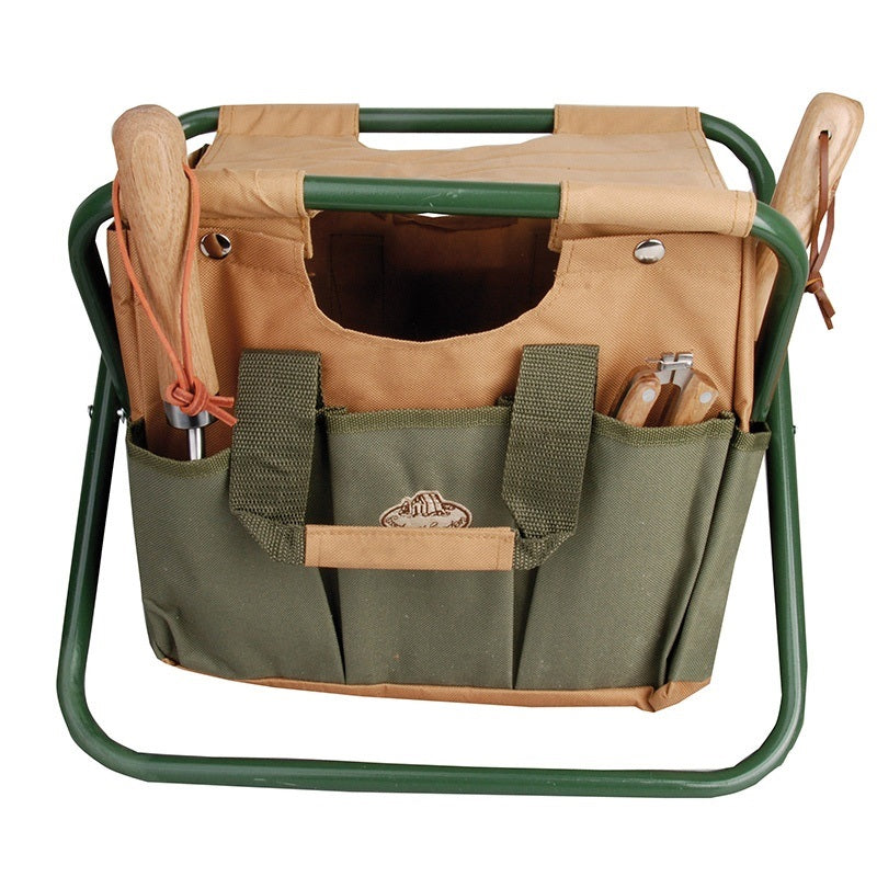 Het krukje bestaat uit een stevig, stalen frame en onder het krukje vind je een handig opbergvak. In het grote vak en de kleine zijvakjes is meer dan genoeg ruimte voor al je kleine tuingereedschap.