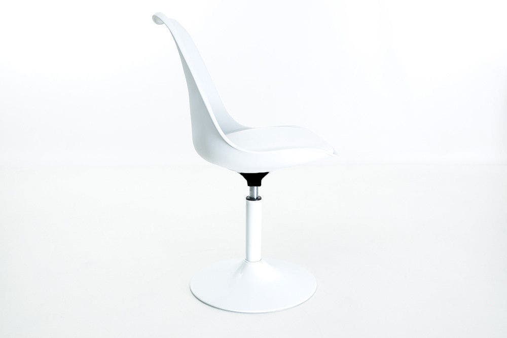 De trompetvormige poot zorgt ervoor dat de zitting draaibaar is. De elegante zitting past perfect bij het fraai vormgegeven onderstel. Hierdoor heb je een fijne eetkamerstoel in huis die ook prima achter een bureau past!