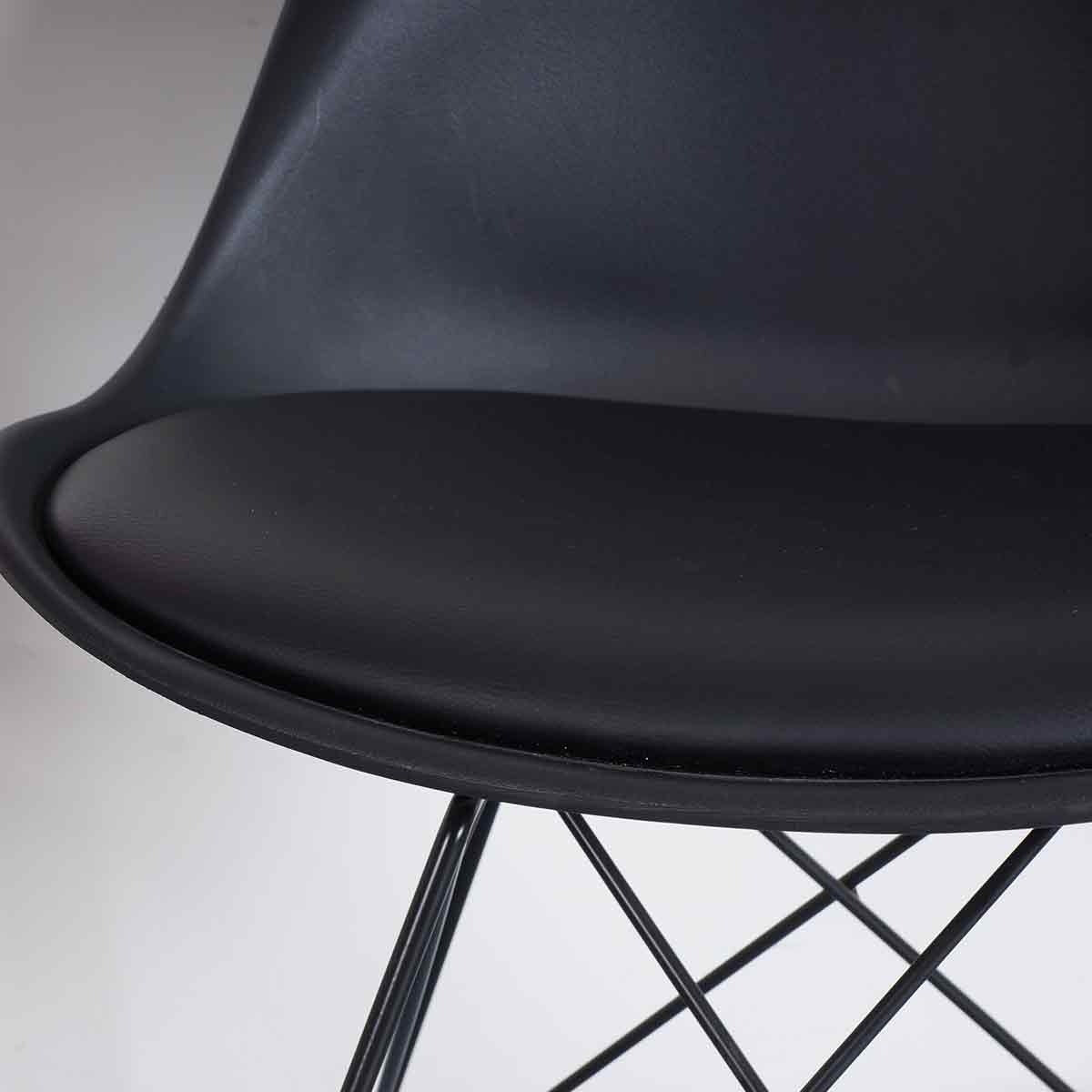 Het ontwerp is simpel en daardoor heel gemakkelijk te combineren met andere eetkamerstoelen. De kunststof zitting met vast zitkussen wordt ondersteund door strakke, zwarte metalen poten. Die zelfs verkrijgbaar zijn in meerdere kleuren onderstellen. Waardoor je gemakkelijk kunt combineren met andere uitvoeringen. Maar onthoud wel, in deze comfortabele kuipstoel plof je elke dag heerlijk neer.