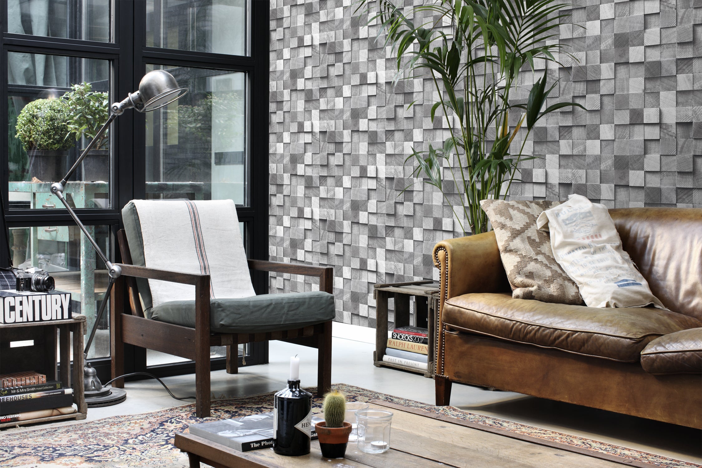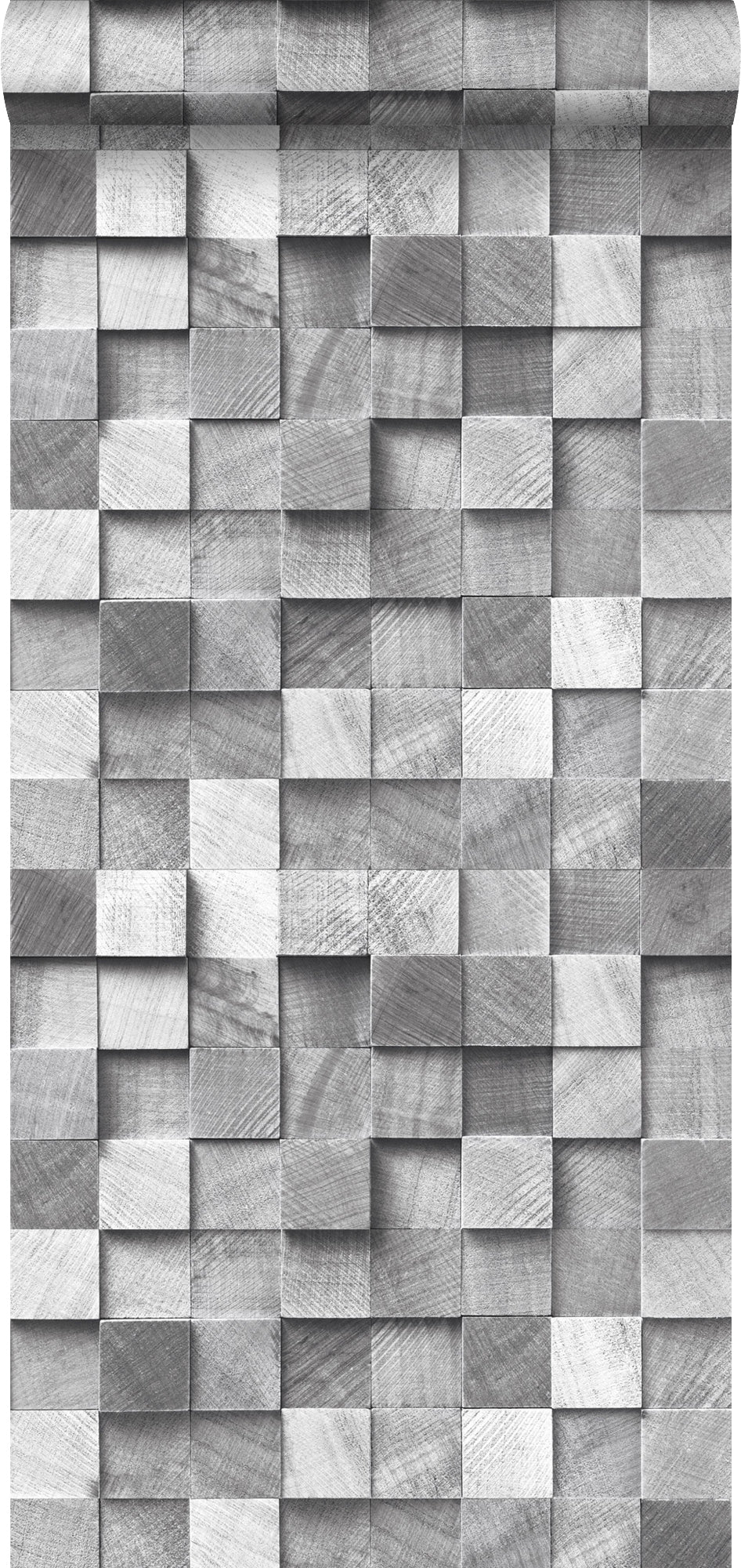 ESTAhome behang 3D-houtmotief grijs - 53 cm x 10,05 m - 138527