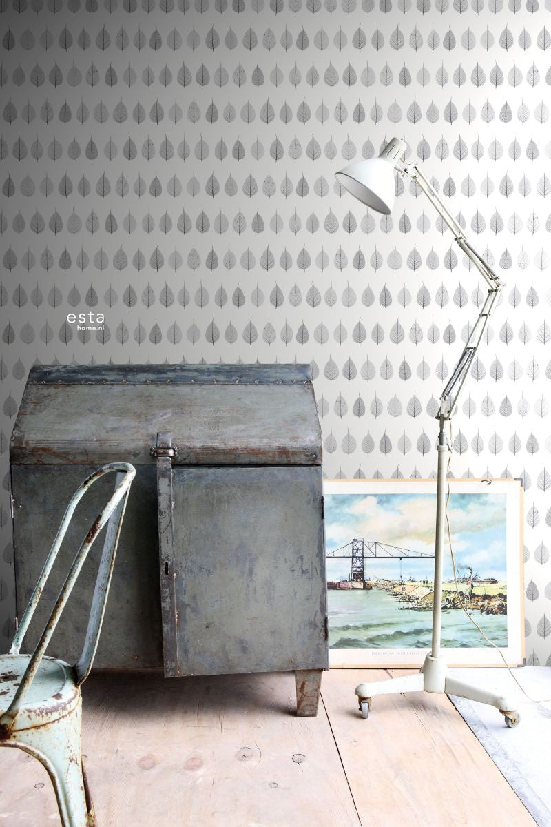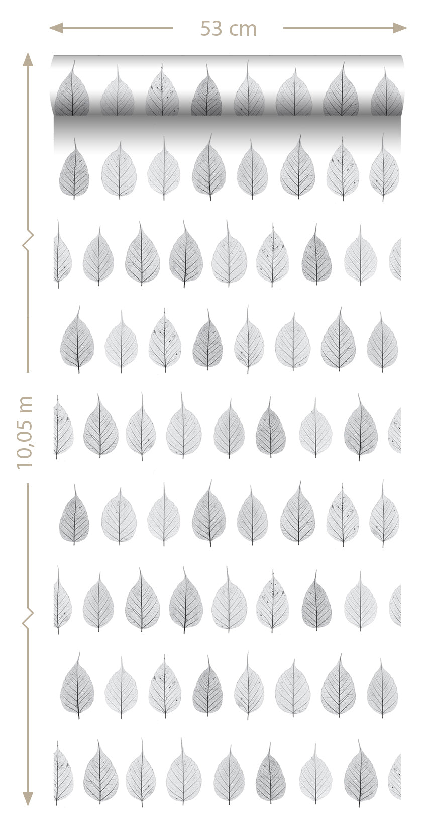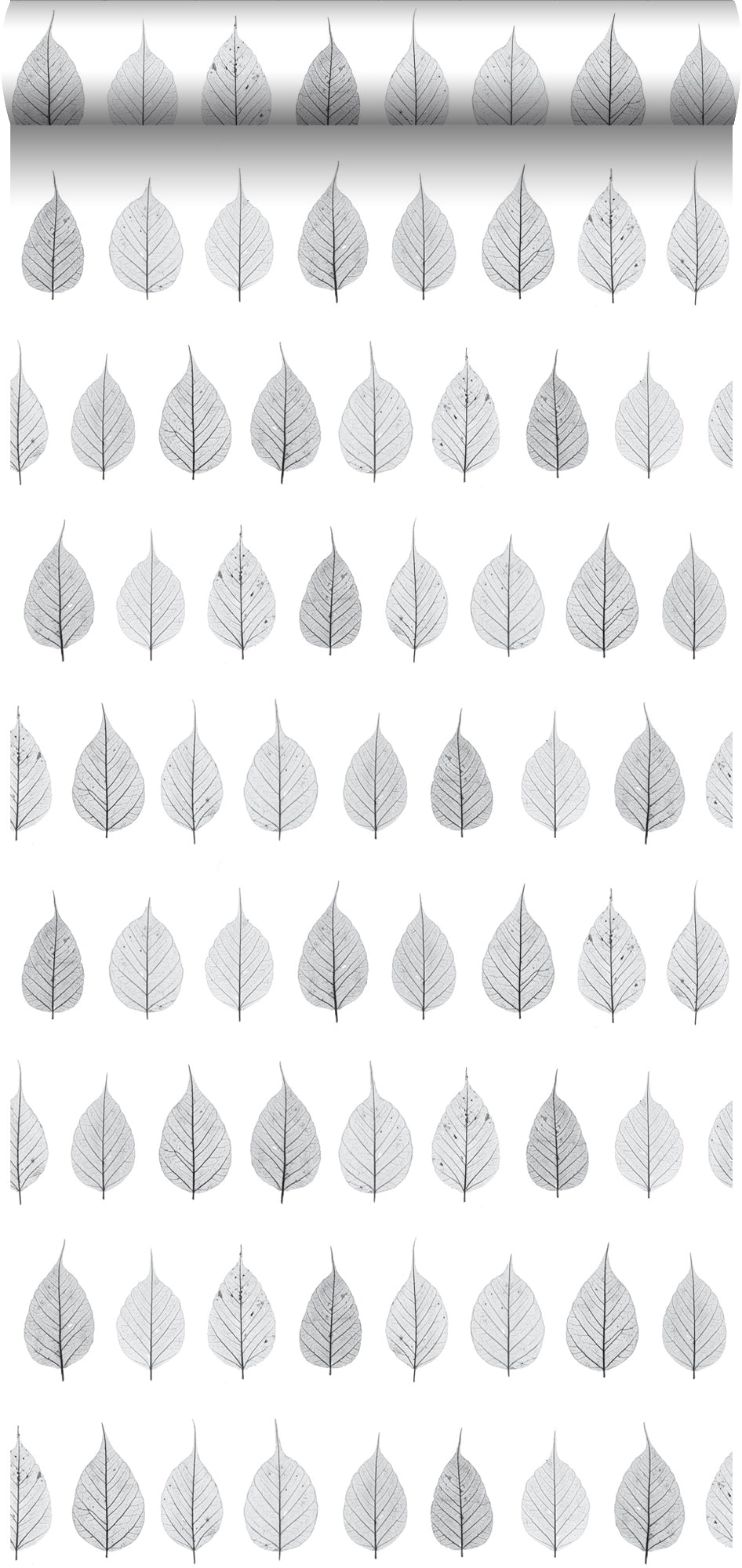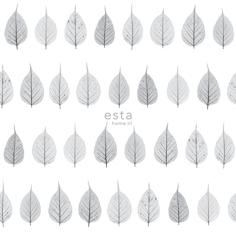 ESTAhome behang skeletbladeren zwart, licht warm grijs en mat wit - 12