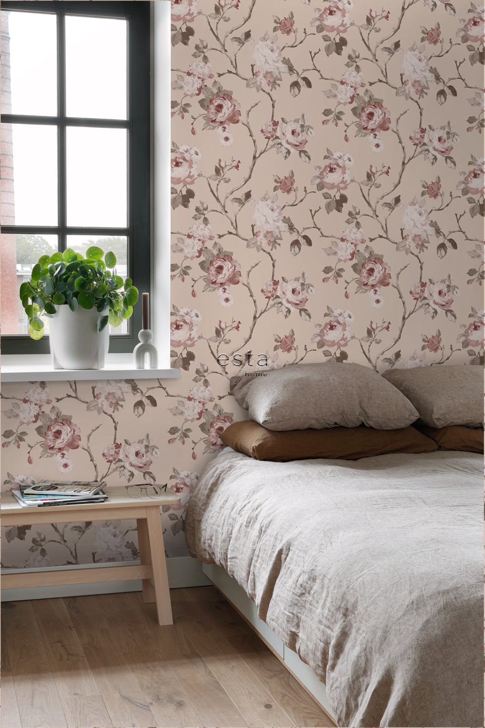 ESTAhome behang vintage bloemen oudroze - 0.53 x 10.05 m - 139476