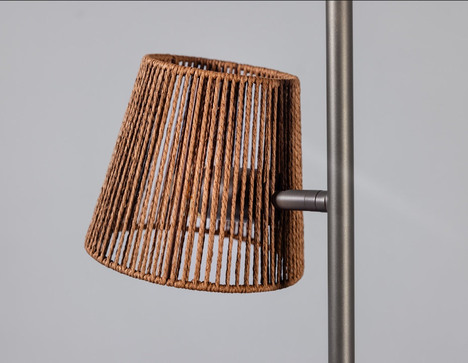 De Vloerlamp Daan is nieuw in de collectie bij ETH. De vloerlamp is voorzien van drie keer een E27 fitting (lichtbron niet mee geleverd) De kap van de lamp is in de kleur bruin en is gemaakt van riet wat een sfeervolle en natuurlijke keuze voor interieurs. Het armatuur is in de kleur bruin. Het ontwerp is een rustieke of bohemien stijl, waarbij het gebruik van riet zorgt voor een warme, natuurlijke uitstraling. Doordat het riet geweven is geeft de kap een prachtig effect als hij aan staat. Combineer de tafellamp met de vloerlamp om zo één geheel te creeeren. De lamp is dimbaar doormiddel van een externe dimmer (niet meegeleverd) of doormiidel van een 3 stappen lichtbron.