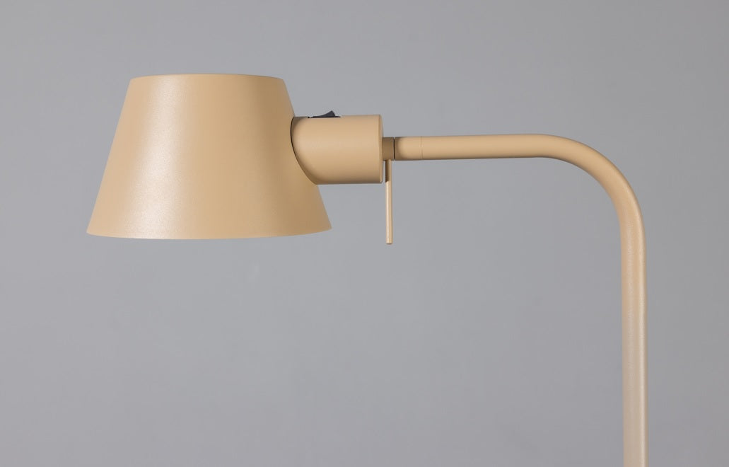 Deze prachtige tafellamp in de kleur zand uit de serie Dex staat prachtig op u bureau, woonkamer of slaapkamer. Door zijn moderne look kan de lamp op elke gewenste plek neergezet worden. De lamp heet een E27 fitting (wordt zonder lichtbron geleverd) en een maximale wattege van 8. Doormiddel van een externe dimmer of een 3 standen lichtbron is de tafellamp te dimmen. De tafellamp is verkrijgbaar in de kleuren taupe, zwart, zand en gold/brown. Ook zijn de vloerlampen verkrijgbaar in deze kleuren.