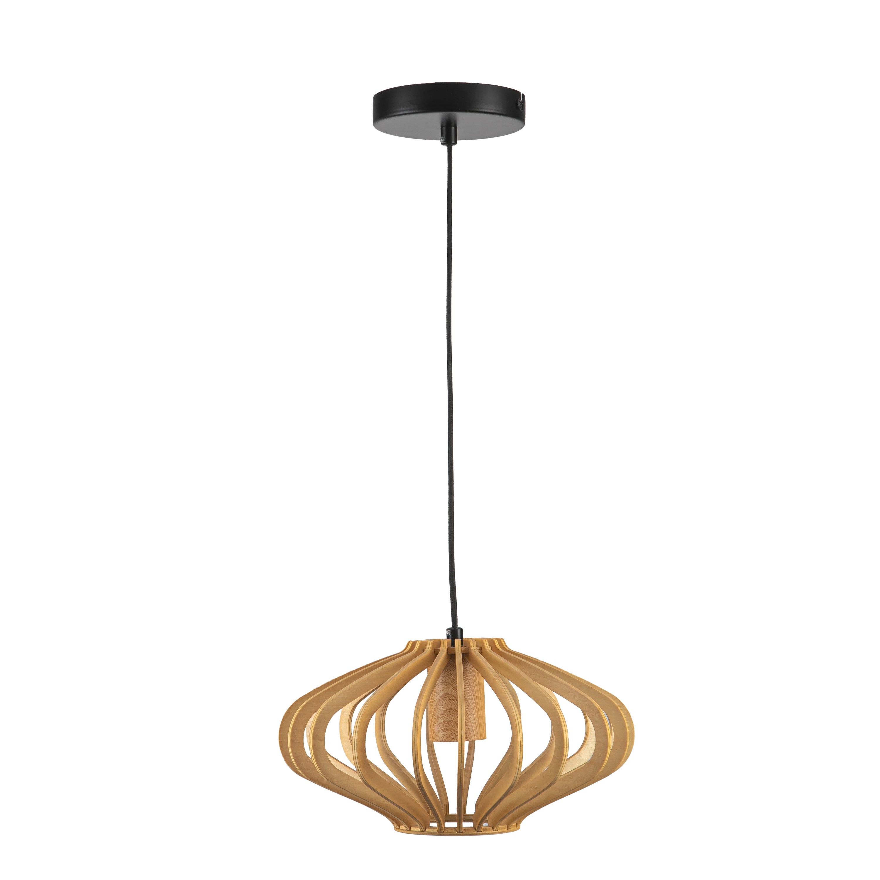 Deze prachtige houten hanglamp van het merk ETH past in elk interieur,of dat nu modern of landelijk is hij komt overal goed tot zijn recht. De lamp heeft een E27 fitting en wordt zonder lichtbron geleverd. De lamp is te dimmen door middel van een wanddimmer of via de wandschakelaar met een 3 stappen lichtbron.