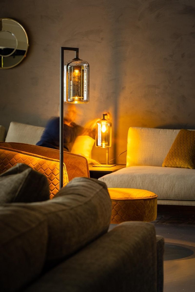 Wij zijn écht fan van vloerlamp The John van ETH! De kap van trendy smoky rookglas vormt een mooi contrast met het strakke metalen onderstel. Het rookglas zorgt ervoor dat vloerlamp The John een sfeervolle warme gloed door de kamer verspreidt.