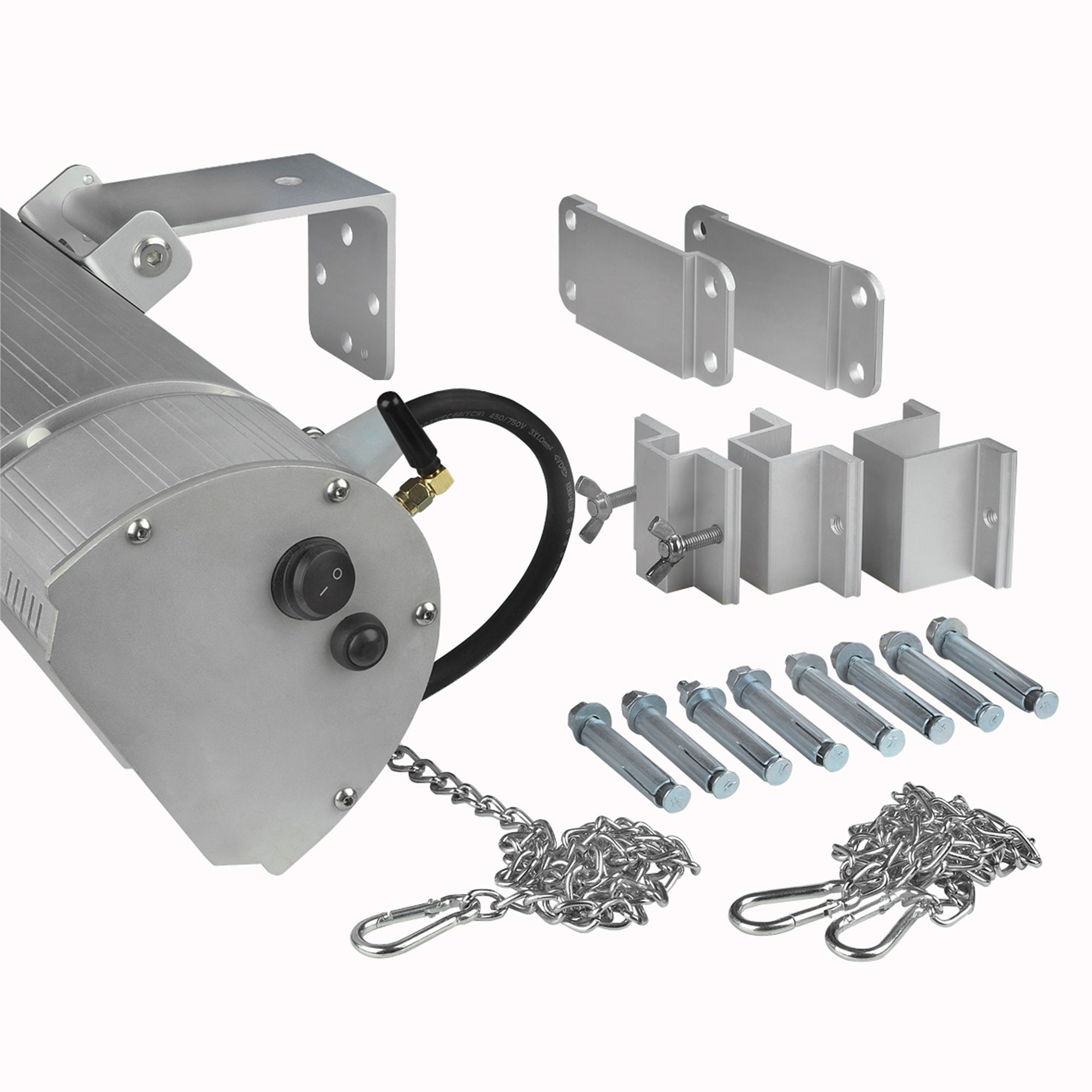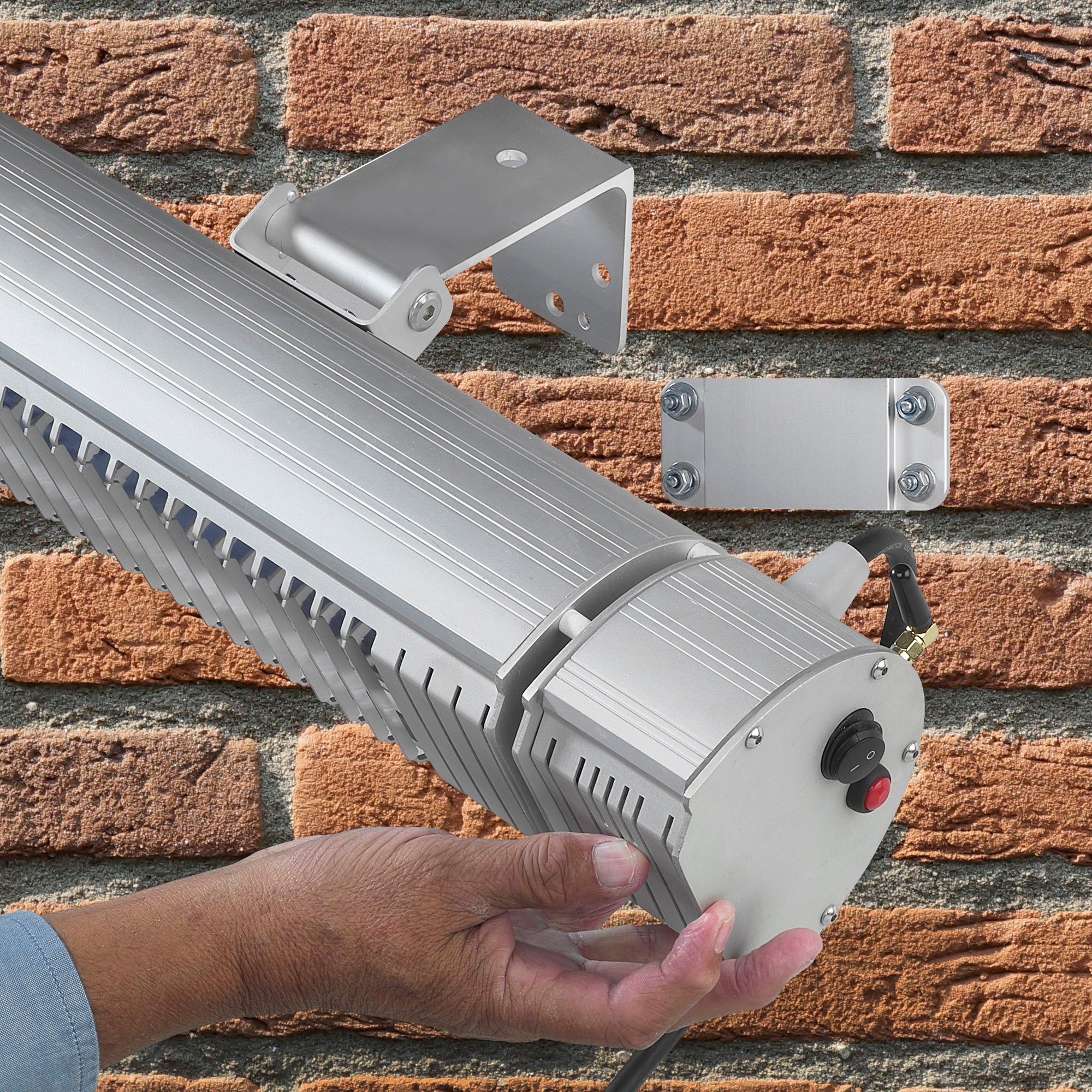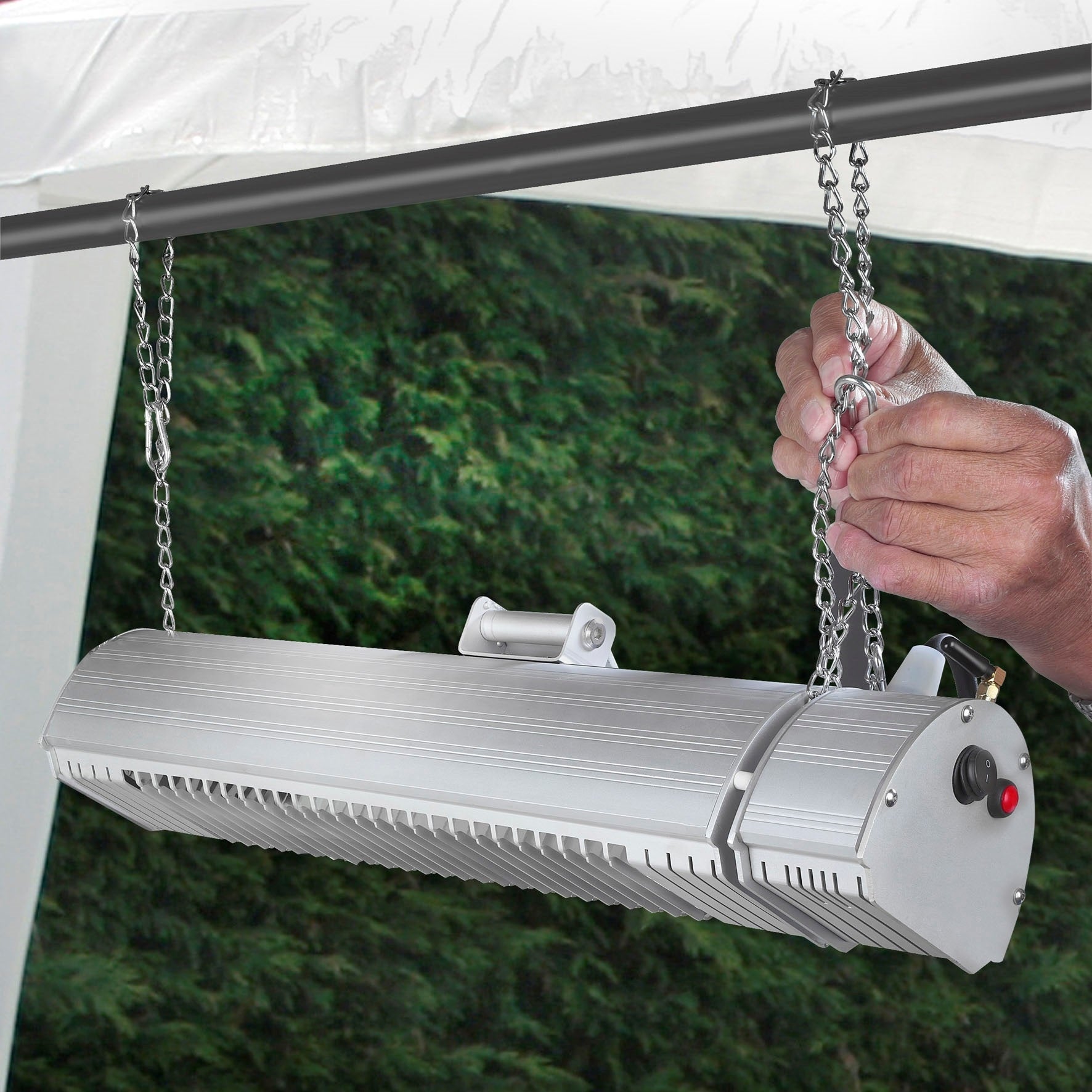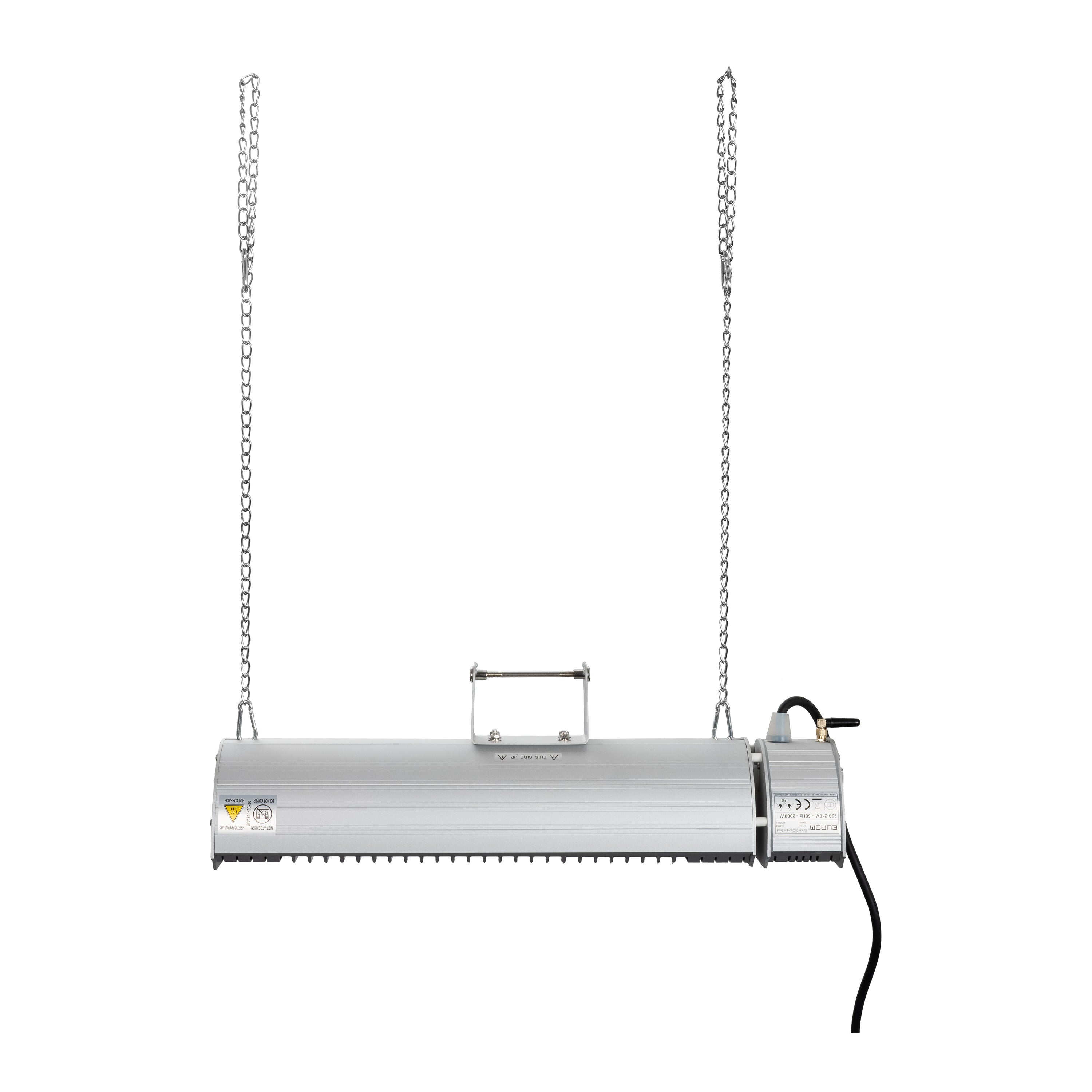 Aan de muur of aan het plafond Deze terrasverwarmer van Eurom kan op vrijwel iedere plek opgehangen worden. De heater wordt geleverd met een muursteun en twee kettingen en kan daardoor zowel aan de muur als aan het plafond worden opgehangen. De heater is bovendien 100° verticaal draaibaar zodat de warmte optimaal verspreid kan worden. De omkasting is gemaakt van sterk en licht aluminium waardoor de heater zeer duurzaam is.