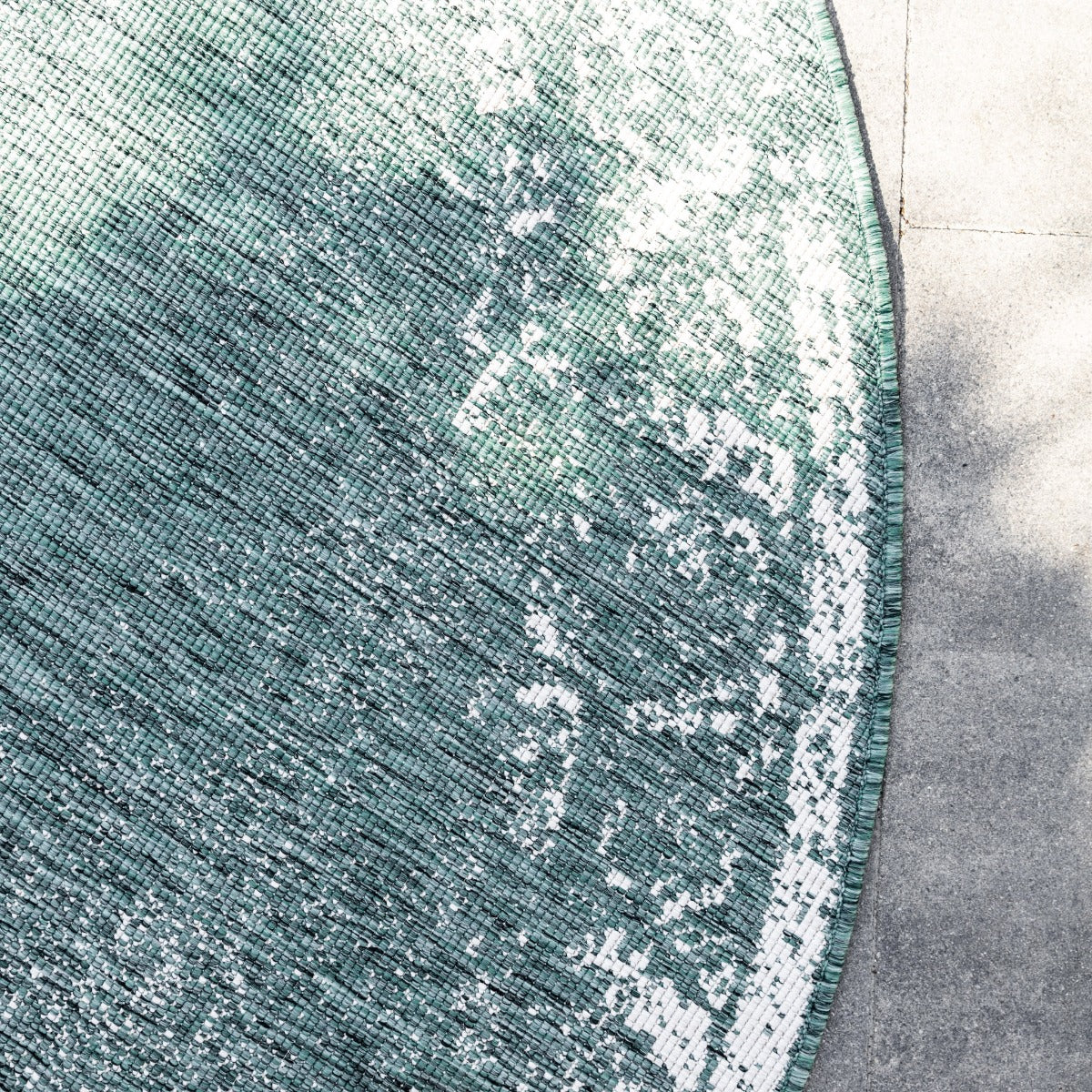Dit ronde buiten vloerkleed Sage in de kleur groen is gemaakt van het materiaal Polypropyleen. Dit vloerkleed is geschikt voor binnen en voor buiten. Ook kun je beide kanten van het buitenvloerkleed gebruiken. Door de rustige kleurtinten is het buiten vloerkleed makkelijk en goed te combineren. Hetzelfde kleed is ook in de rechthoekige maten 160 x 230 cm, 200 x 290 cm, 240 x 340 cm en 280 x 380 cm beschikbaar. Daarnaast zijn de kleden ook leverbaar in de kleuren grijs, roest en zwart!