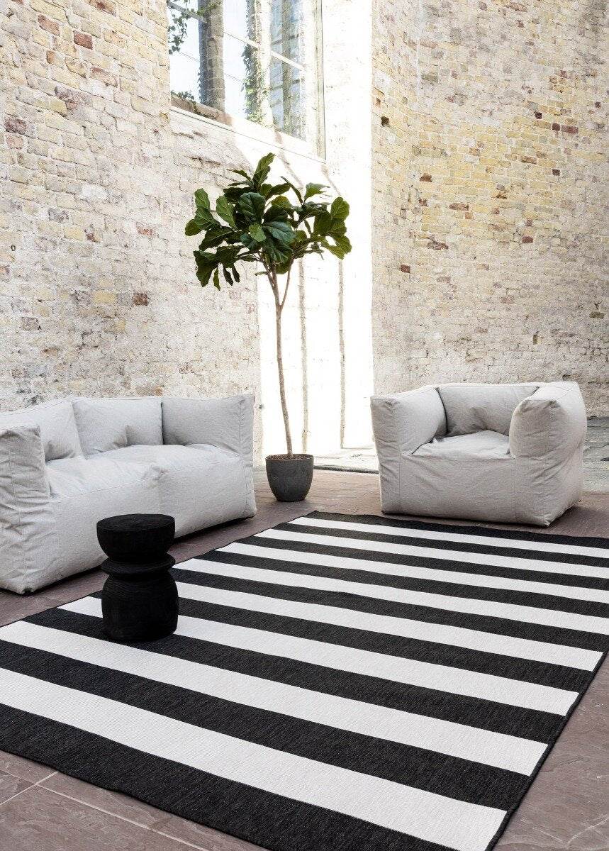 Eva Interior Buitenkleed Stripes zwart|wit dubbelzijdig - 240 x 340 cm