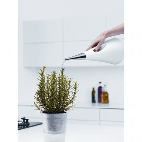 Een minimalistisch design en een grote inhoud van maar liefst 2 liter. Het handvat zorgt ervoor dat hij eenvoudig vast te houden is terwijl de kleine opening zorgt voor een gelijkmatige stroom van water. Zelfs de kleinste potjes en plantjes krijgen water van deze gieter, zonderdruppels op de grond. De gieter na het watergeven binnen laten staan.