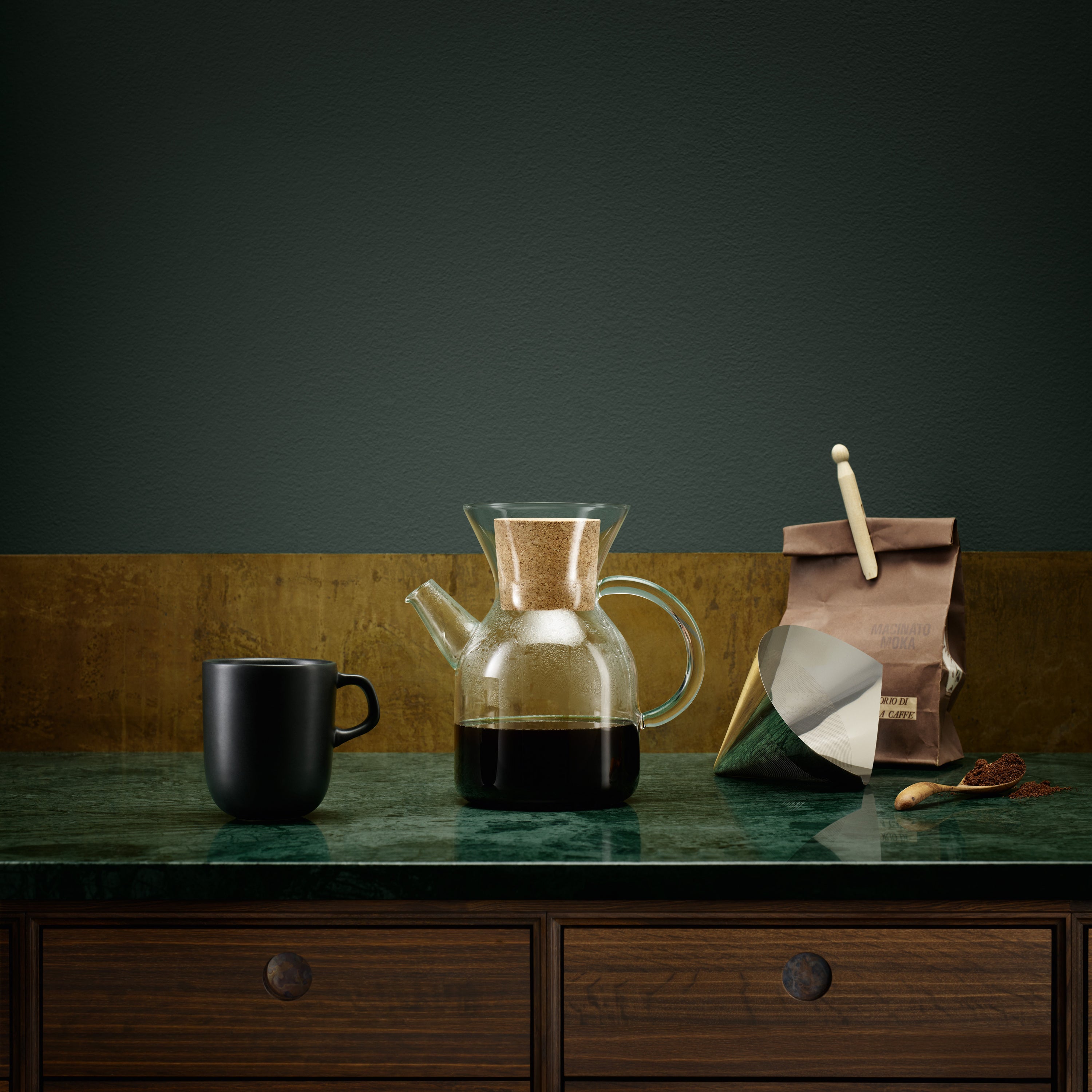 Herbruikbaar filter Je hebt geen papieren filters meer nodig. Dat scheelt jou weer in de portemonnee en een paar bomen van de planeet! Plaats het RVS koffiefilter in de glazen koffiemaker en vul deze met de gemalen koffiebonen. Vervolgens giet je er gekookt water overheen in een langzame cirkelbeweging. Zo druppelt de koffie voorzichtig in de glazen kan en is het klaar om ingeschonken te worden. Heerlijk! De kunst van slow coffee.