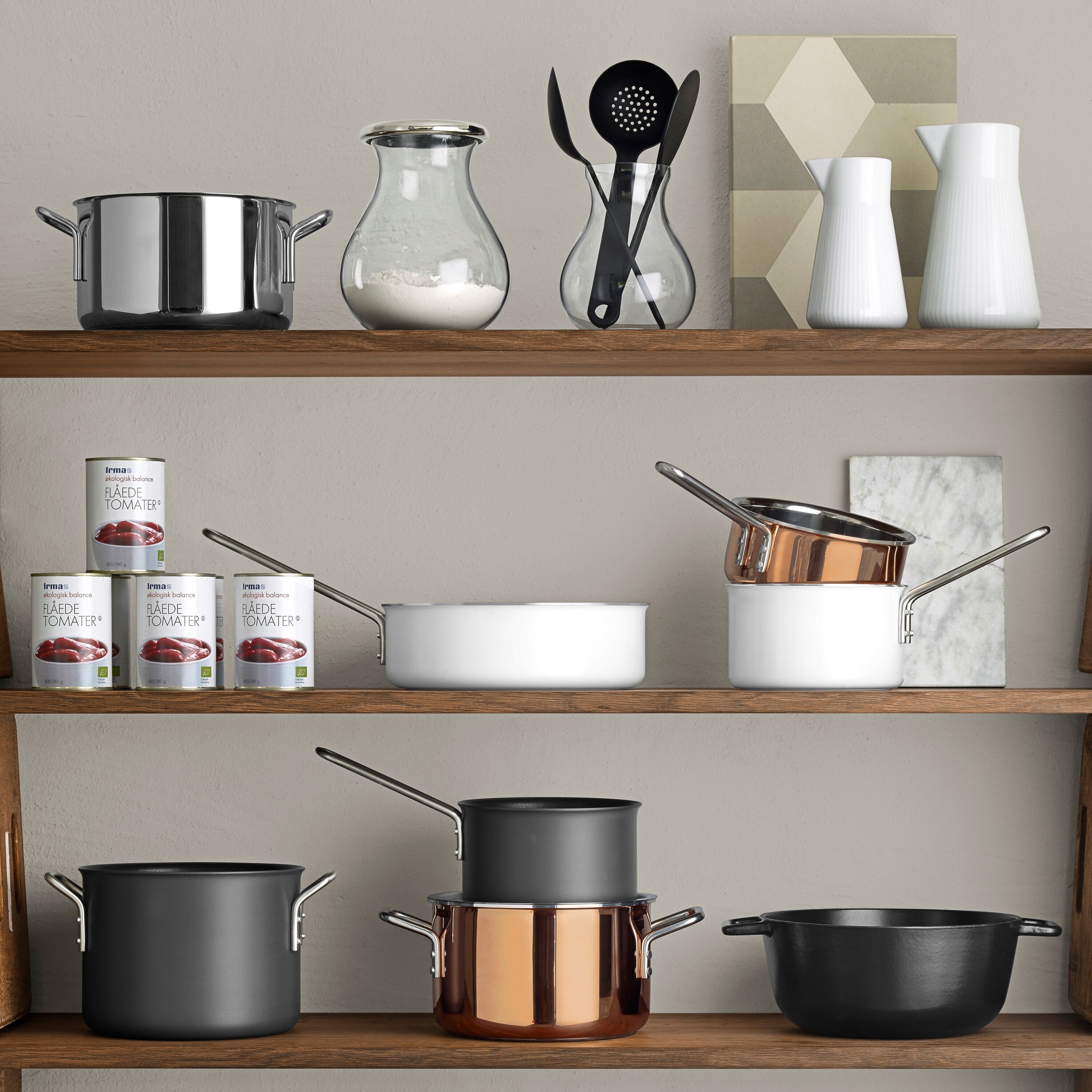 Eva Solo White Line pannenset De prachtige Eva Solo White Line pannenset bestaat uit twee kookpannen en een steelpan:
