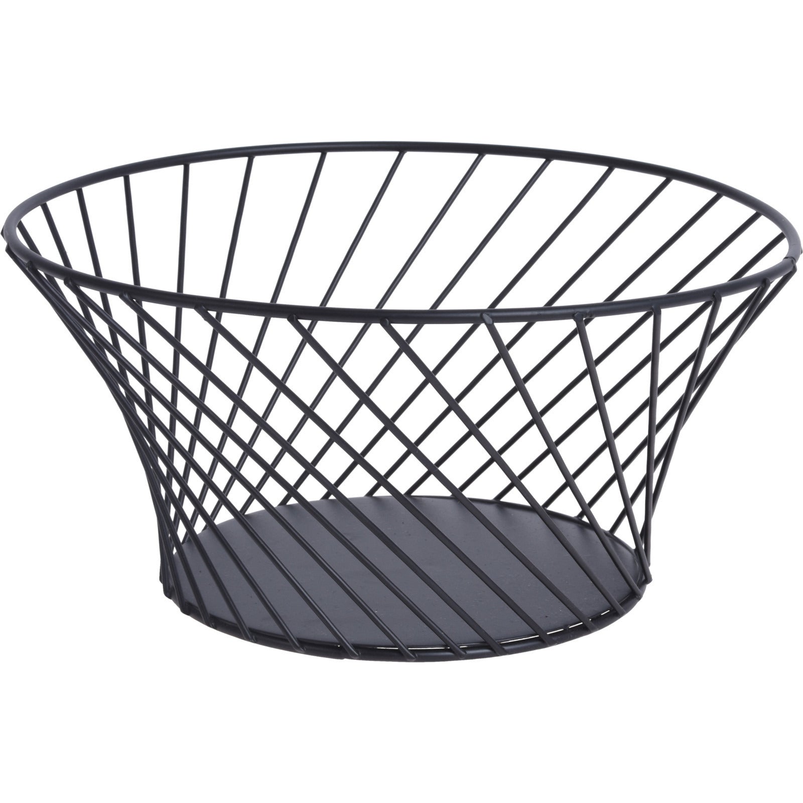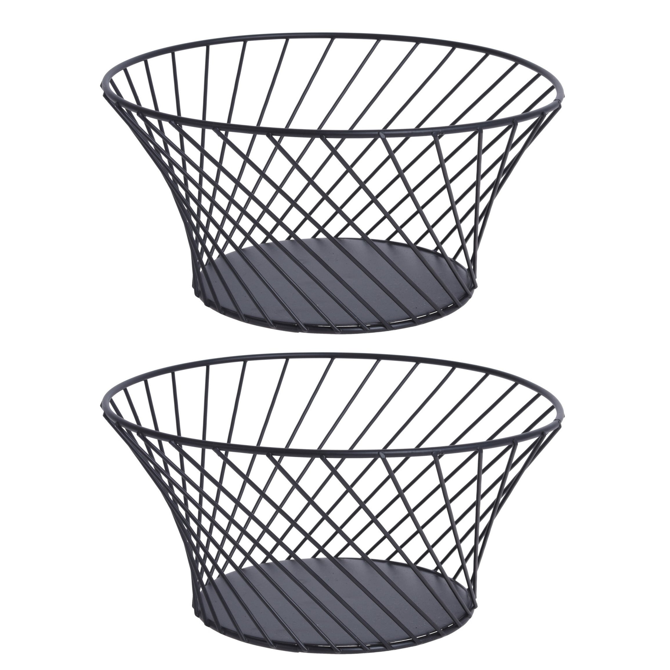 Metalen fruitmand/fruitschaal zwart rond 26 cm. De deels open rand/wand zorgt voor een constante luchtcirculatie waardoor het fruit minder snel overrijp is. Materiaal: metaal. Reinigen: afnemen met een vochtige doek.