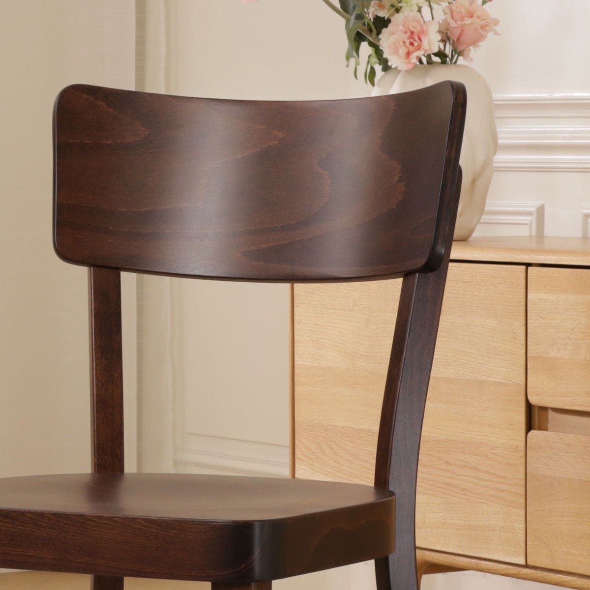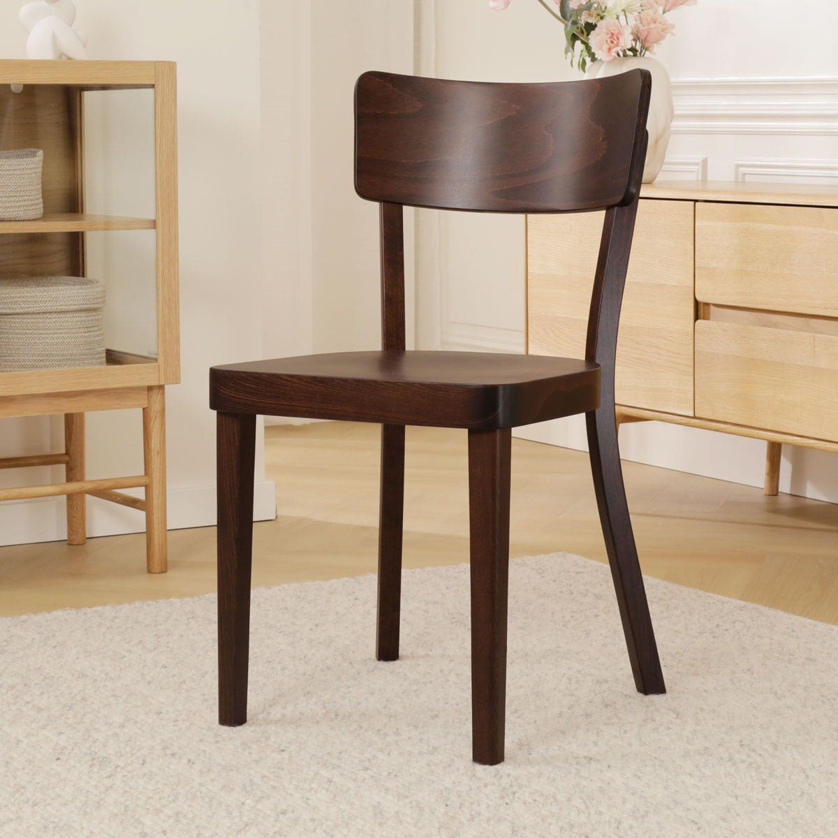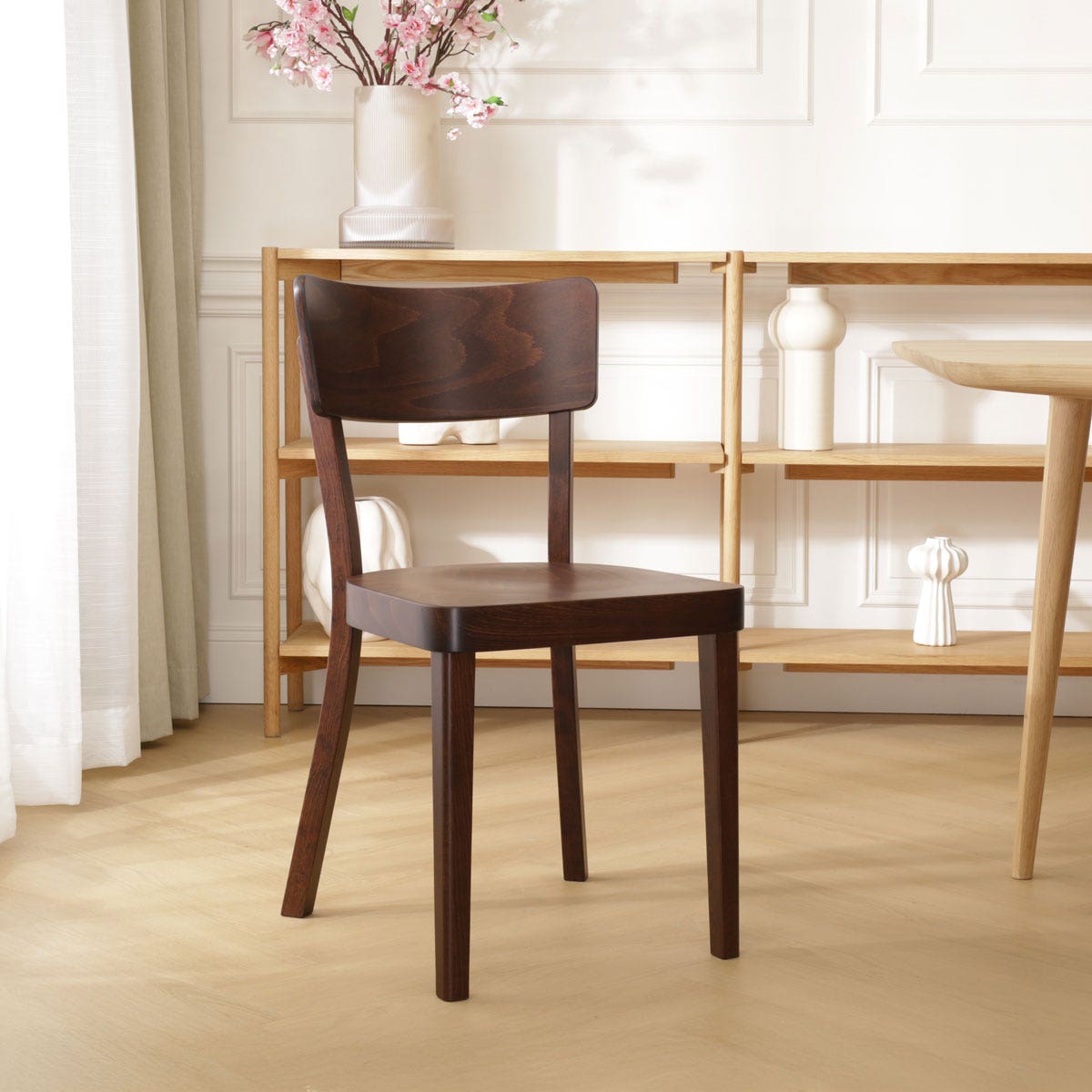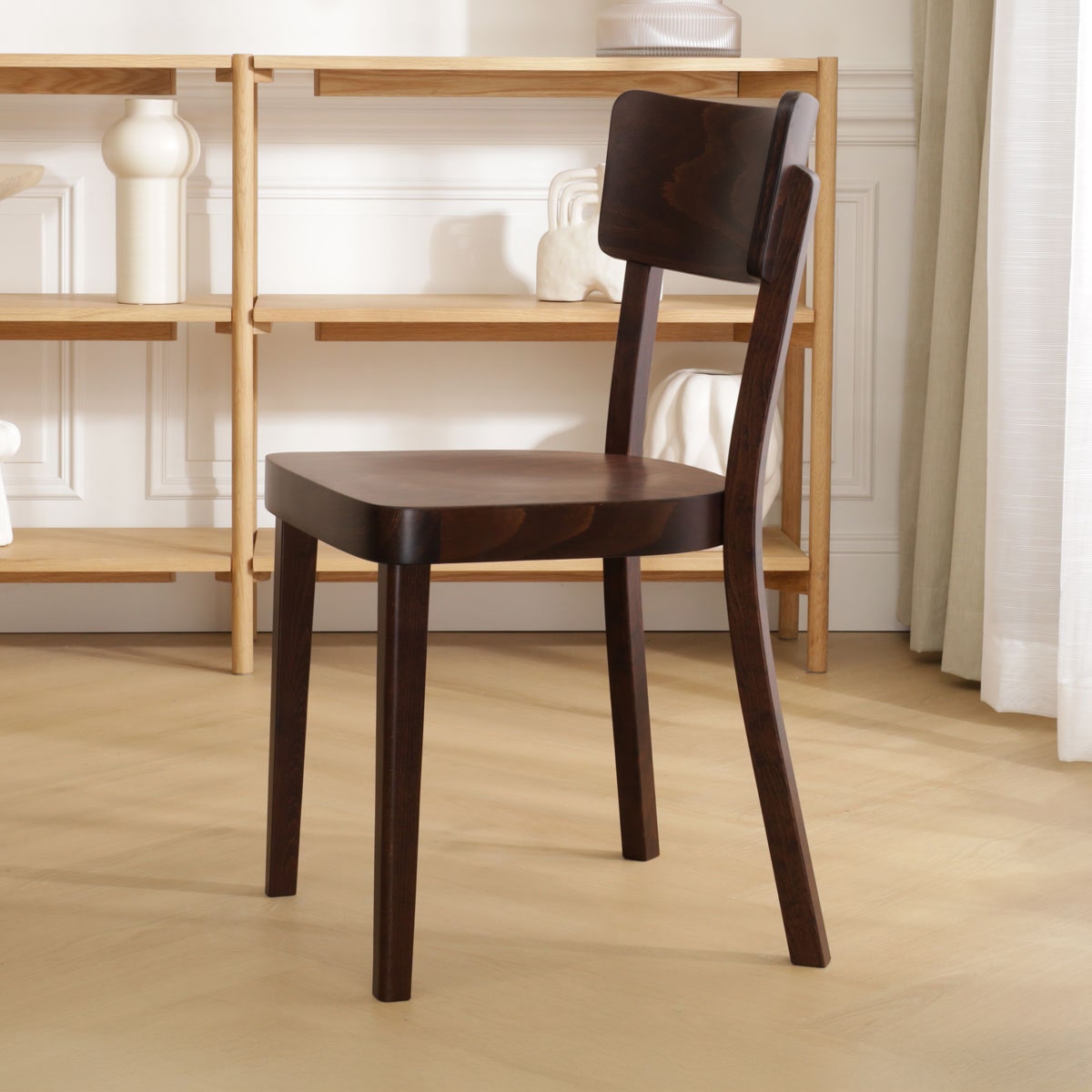 De sympathieke houten Fergus stoel van Fameg is even degelijk als mooi. De gebogen rugleuning en de welving in het zitvlak zorgen voor een uitstekend zitcomfort. Het ingetogen design maakt deze stoel geschikt voor thuis, op kantoor, in de kantine of in een restaurant. Het rustige karakter van deze stoel maakt hem geschikt voor elk interieur. Deze stevige houten stoel is gemaakt vanuit een rijke traditie van meubelmakers. Fameg maakt stoelen, tafels en accessoires volgens het meer dan honderd jaar oude procedé van de beroemde meubelmakersfamilie Thonet. Dit kun je zien aan de elegante lijnen en prachtige afwerking van deze stoel.