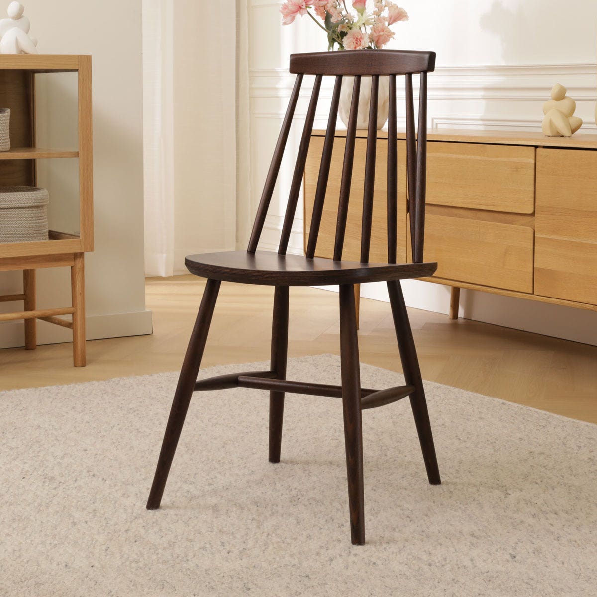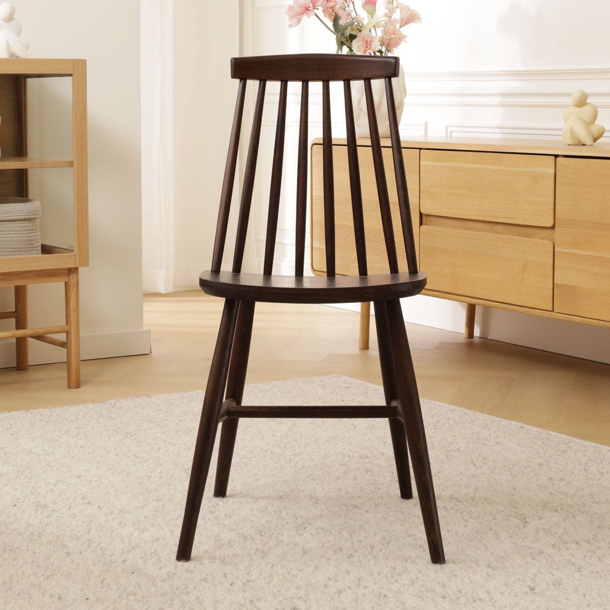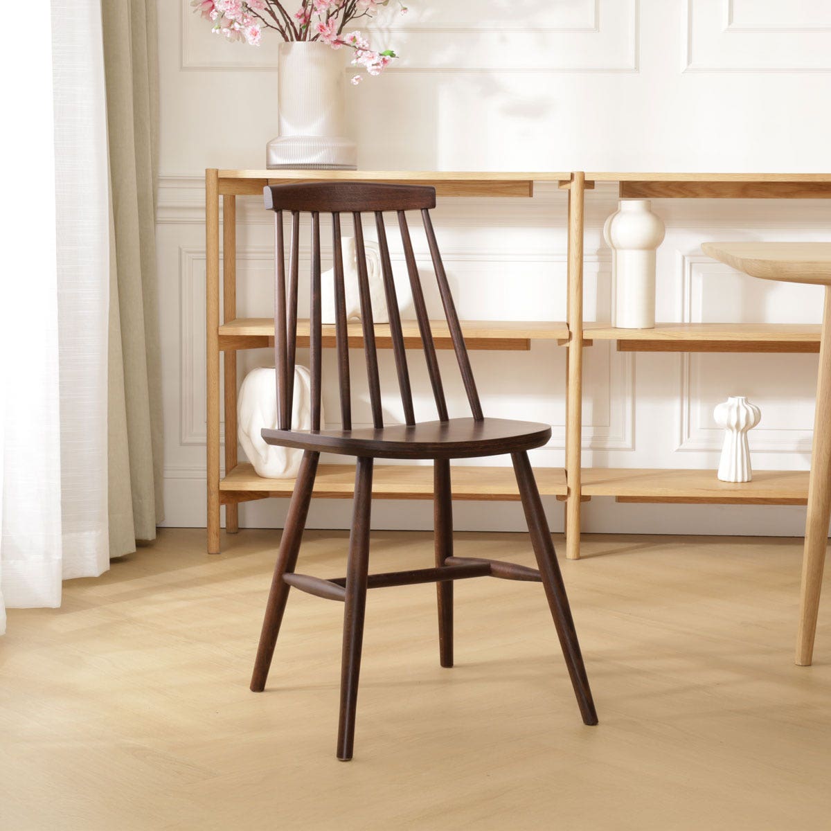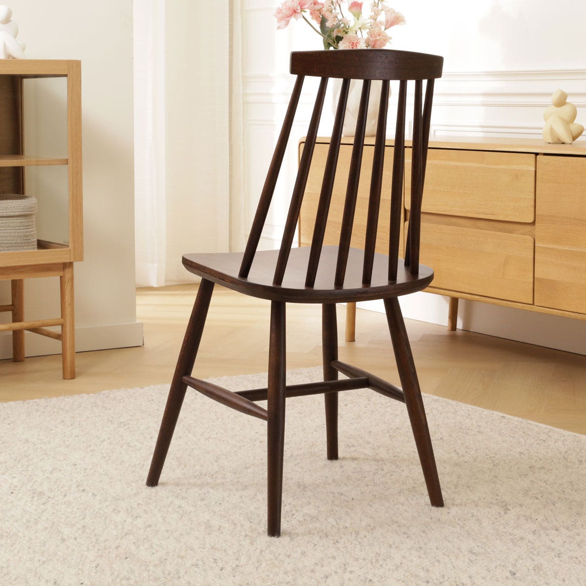 Op het eerste oog ga je met deze Filou spijlenstoel terug naar de jaren 70, maar als je langer kijkt zie je dat dit tijdloze model ook perfect in deze tijd past.