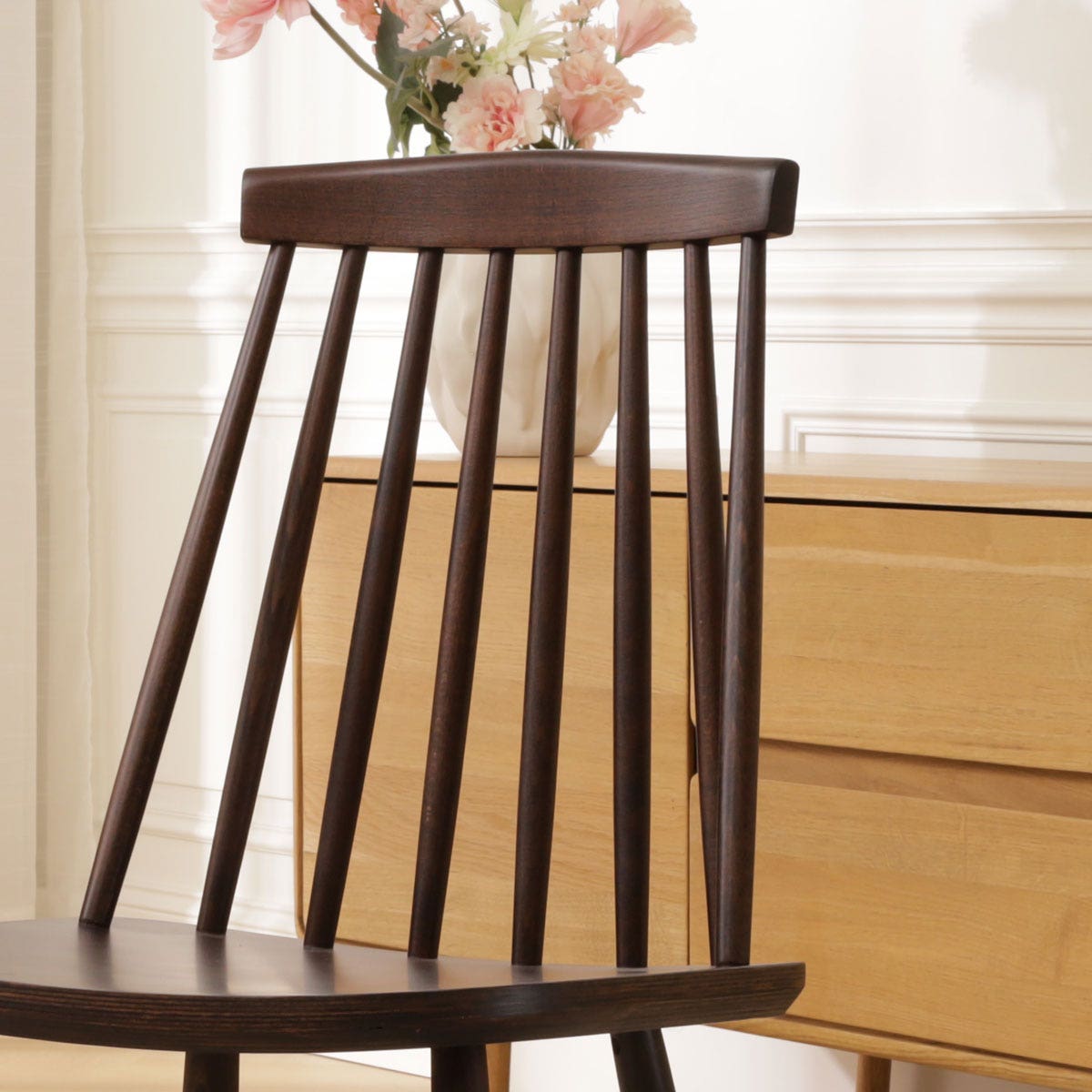 - De eetkamerstoel is gemaakt van beukenhout
