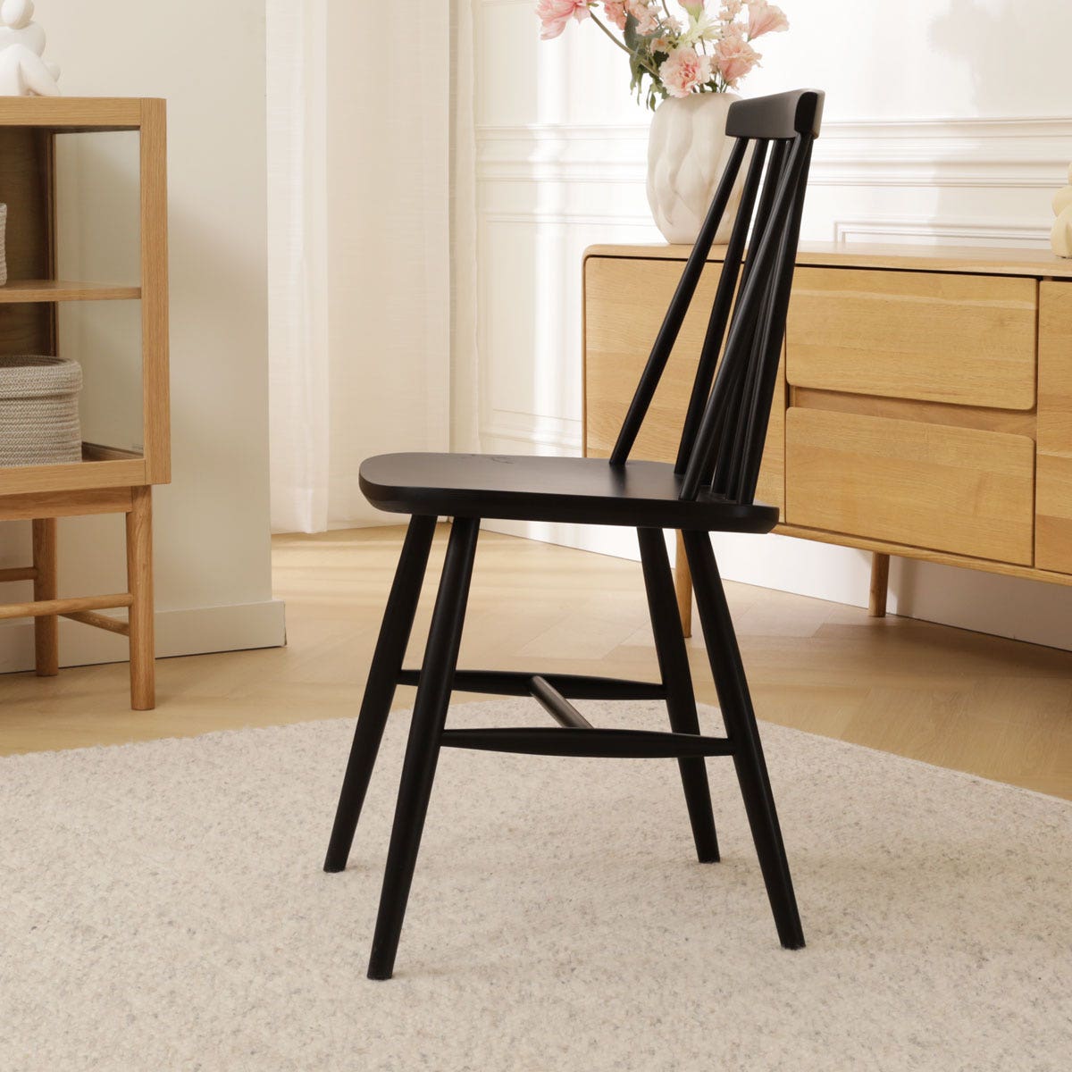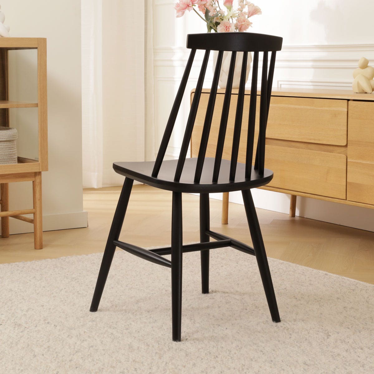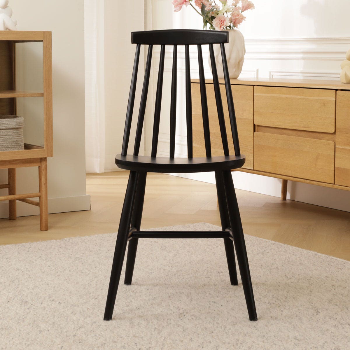 Op het eerste oog ga je met deze Filou spijlenstoel terug naar de jaren 70, maar als je langer kijkt zie je dat dit tijdloze model ook perfect in deze tijd past.