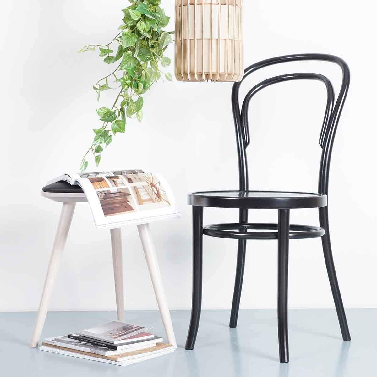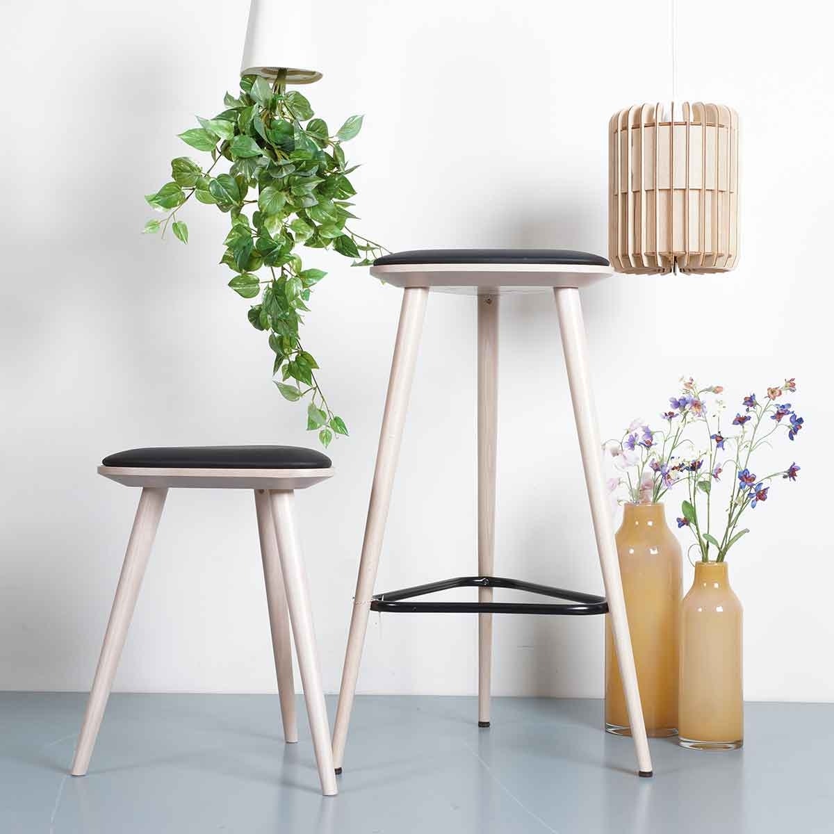 Fameg Finn Houten Krukje met Zwarte Zitting - Whitewash