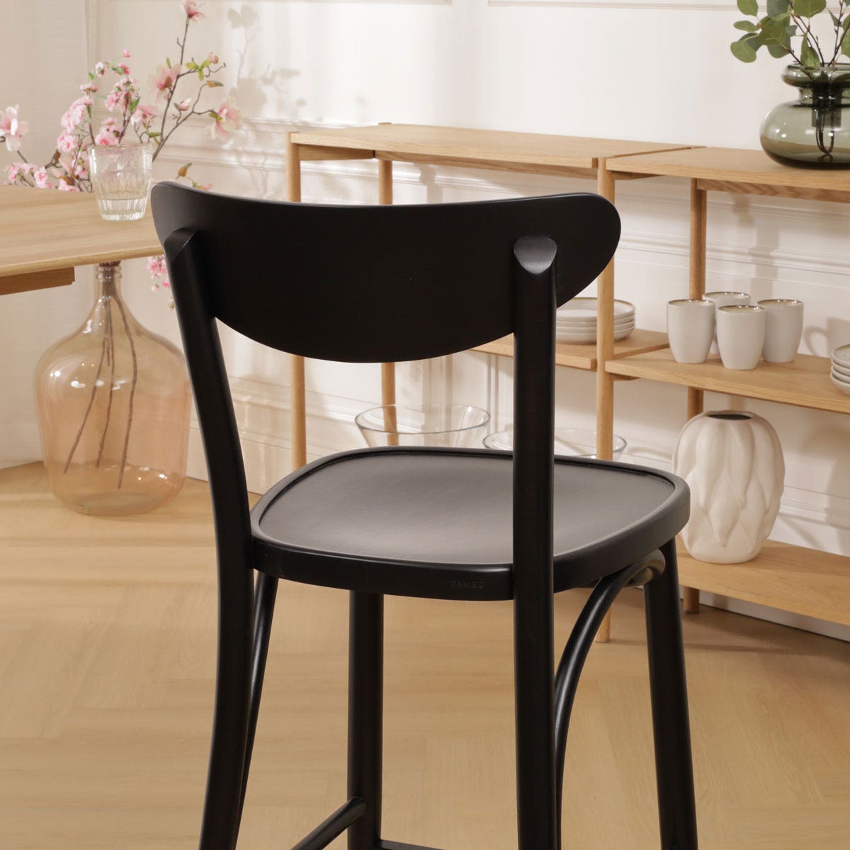 De tijdloze elegantie van de barkruk zorgt ervoor dat hij nooit uit de mode raakt. De banaanvormige rugleuning geeft je een fijn steuntje in de rug. Het frame van de barkruk is gebaseerd op de traditionele buighouttechniek van Thonet. Met deze comfortabele houten barkruk geef jij je interieur een frisse toevoeging.