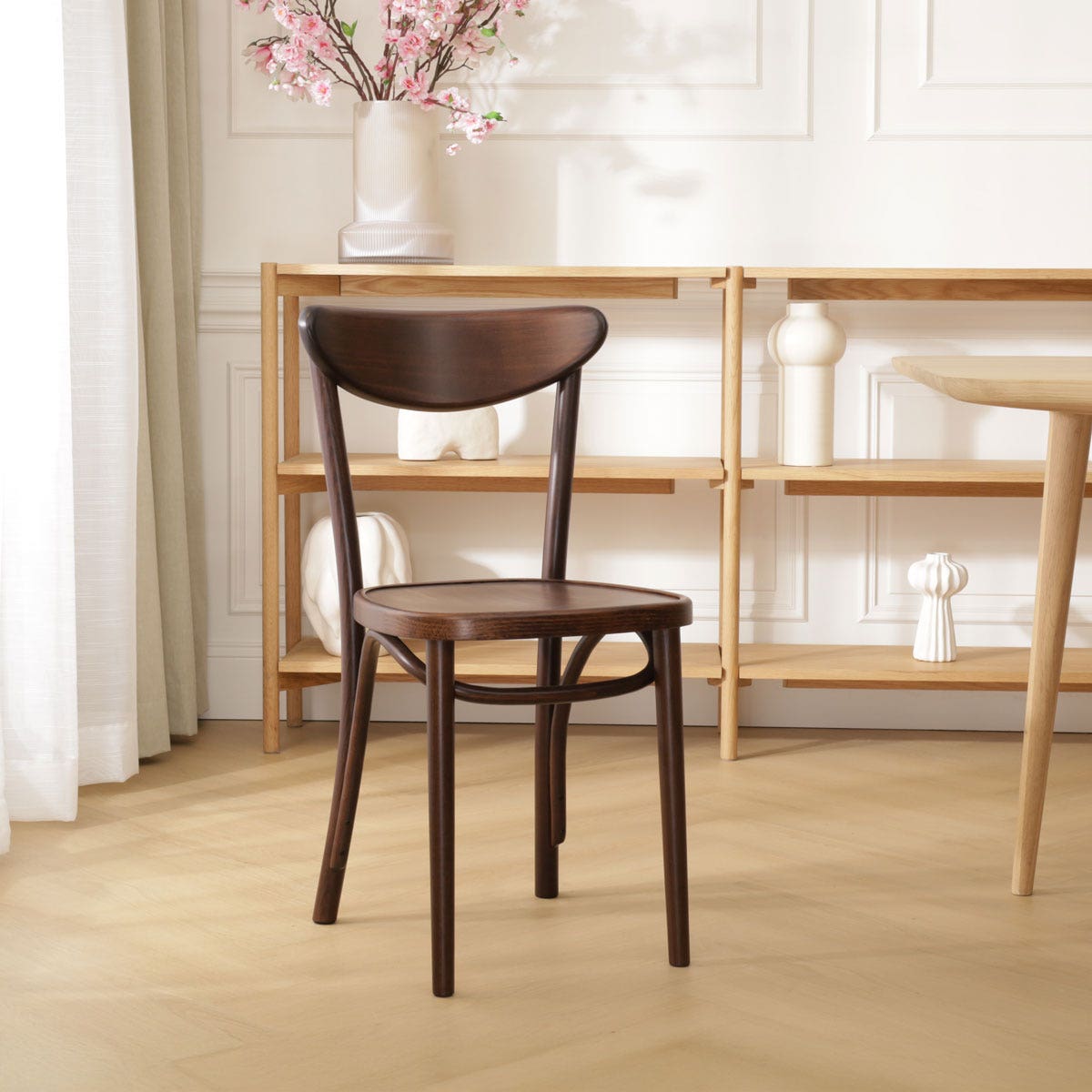 De tijdloze elegantie van deze stoel zorgt ervoor dat hij nooit uit de mode raakt. De banaanvormige rugleuning geeft je een fijn steuntje in de rug. Het stoelframe is gebaseerd op de traditionele buighouttechniek van Thonet. Met deze cafe stoel geef je je interieur gemakkelijk een nieuwe impuls.
