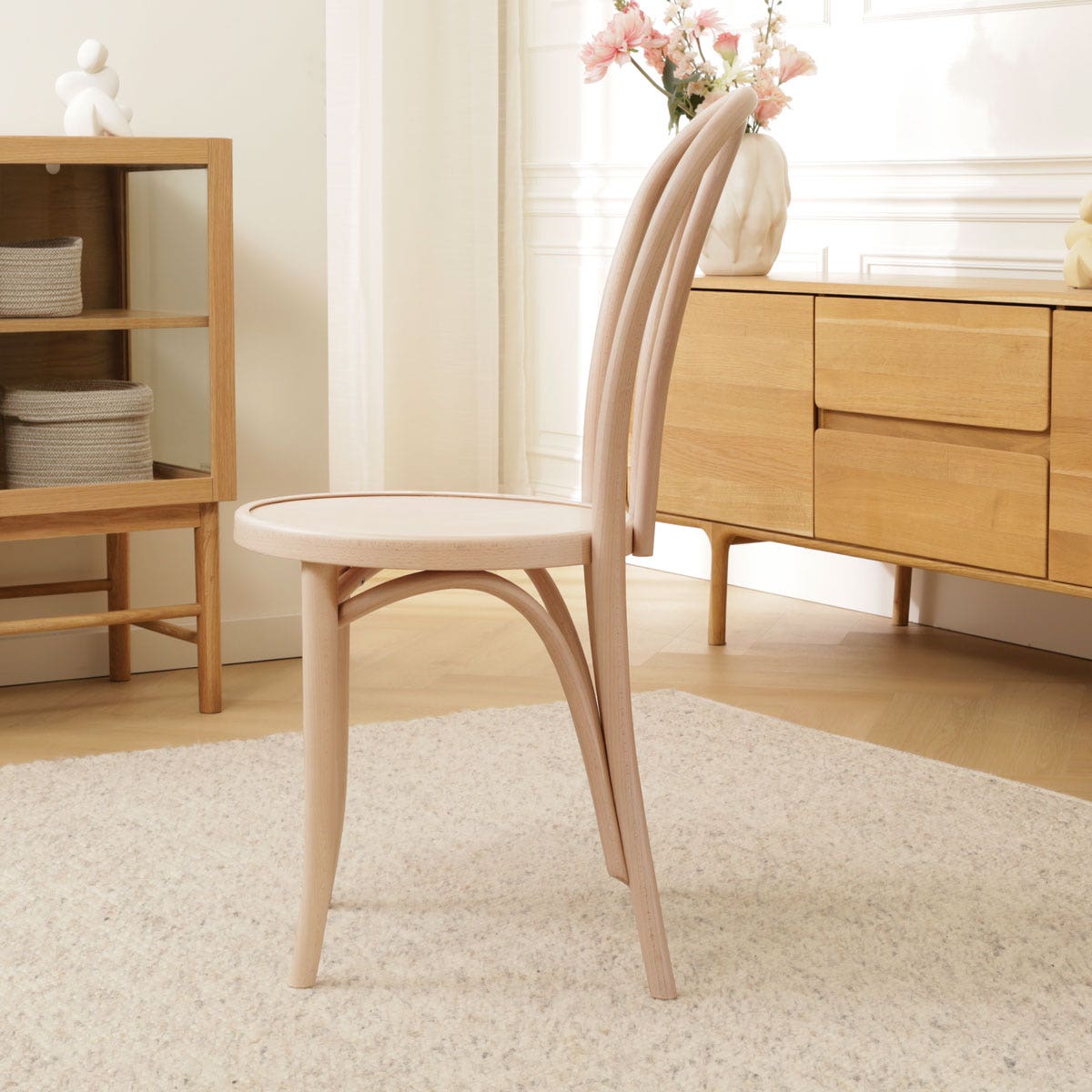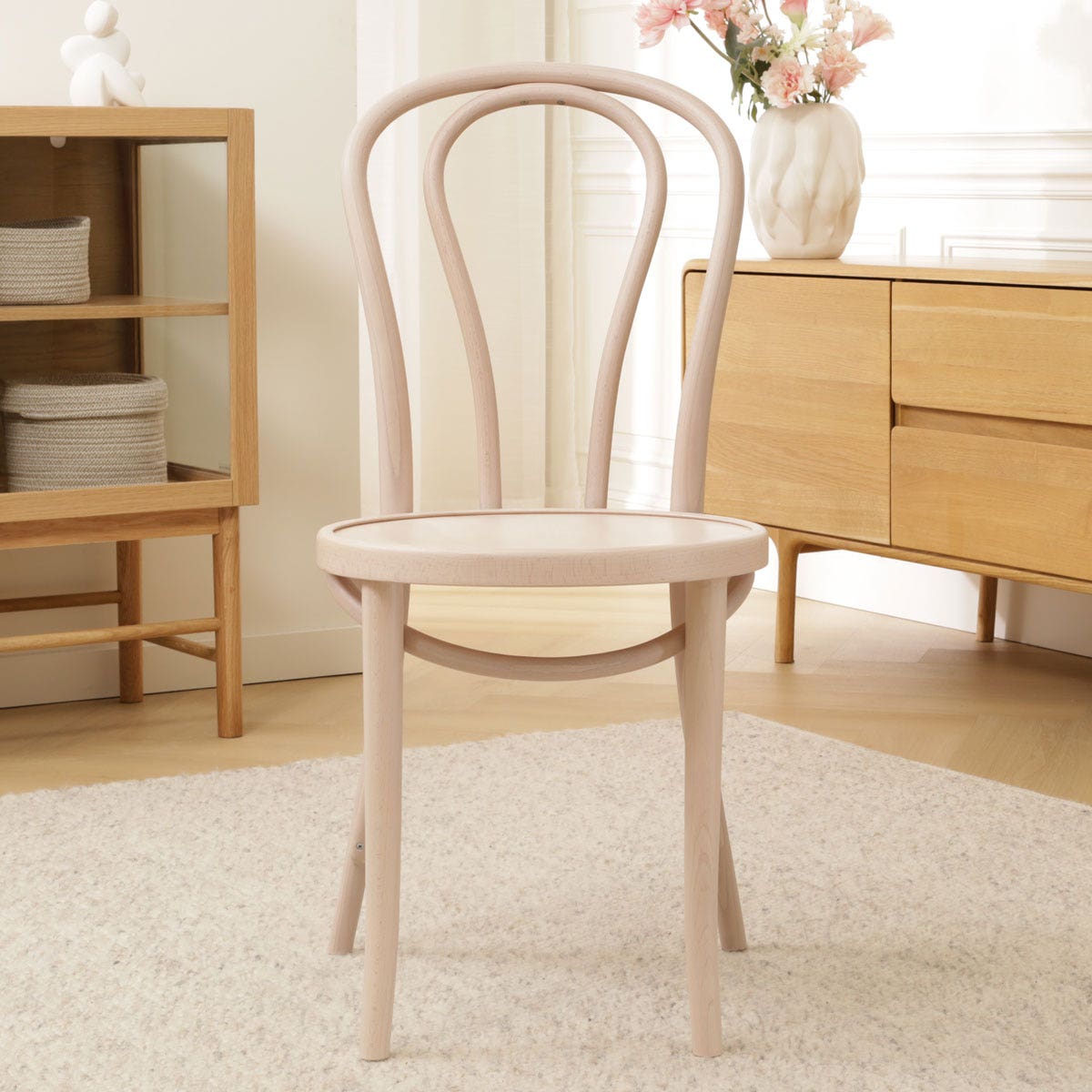 Deze superstevige houten cafe stoel, met de herkenbare lus in de rugleuning, past in ieder modern interieur. De ronde zitting zorgt voor een comfortabele zit. Het elegante, open design van de stoel maakt hem bovendien heel geschikt voor horecagebruik. Rond 1830 ontdekte meubelpionier Michael Thonet een nieuwe manier om hout te buigen. Door met minder houtverbindingen en zonder lijm te werken, maakte hij meubels veel steviger. Het merk Fameg zet dit werk voort in een van de originele Thonet-fabrieken uit 1881. Er zijn al 60 miljoen exemplaren van deze stoel verkocht, in allerlei materialen, kleuren en uitvoeringen. Het design en de duurzaamheid van deze stoel worden al jaren geroemd. Wist je bijvoorbeeld dat deze stoel favoriet was onder kunstenaars als Pablo Picasso?