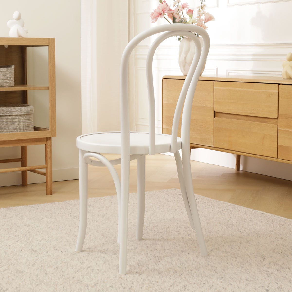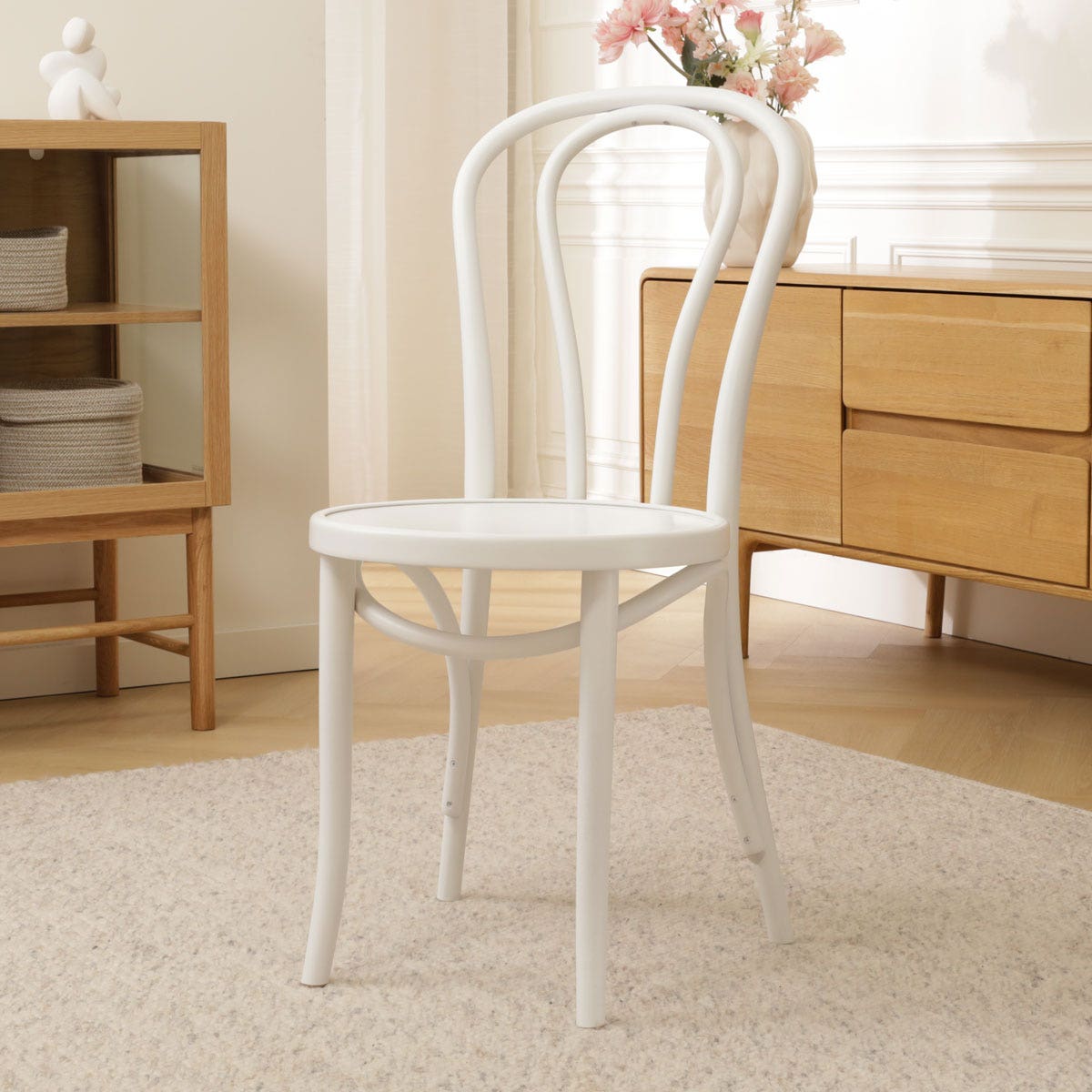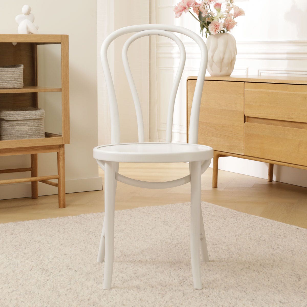 Deze superstevige houten cafe stoel, met de herkenbare lus in de rugleuning, past in ieder modern interieur. De ronde zitting zorgt voor een comfortabele zit. Het elegante, open design van de stoel maakt hem bovendien heel geschikt voor horecagebruik. Rond 1830 ontdekte meubelpionier Michael Thonet een nieuwe manier om hout te buigen. Door met minder houtverbindingen en zonder lijm te werken, maakte hij meubels veel steviger. Het merk Fameg zet dit werk voort in een van de originele Thonet-fabrieken uit 1881. Er zijn al 60 miljoen exemplaren van deze stoel verkocht, in allerlei materialen, kleuren en uitvoeringen. Het design en de duurzaamheid van deze stoel worden al jaren geroemd. Wist je bijvoorbeeld dat deze stoel favoriet was onder kunstenaars als Pablo Picasso?