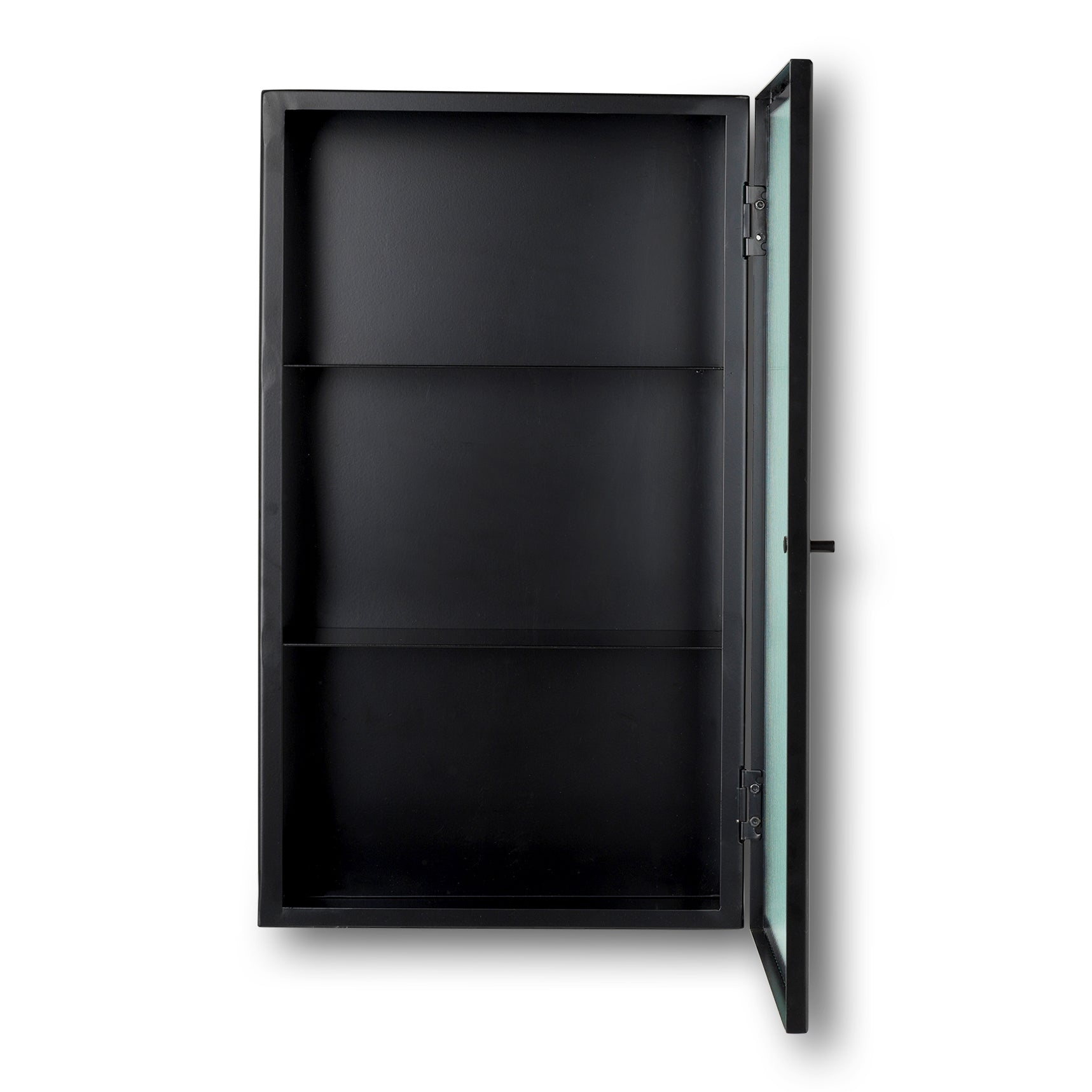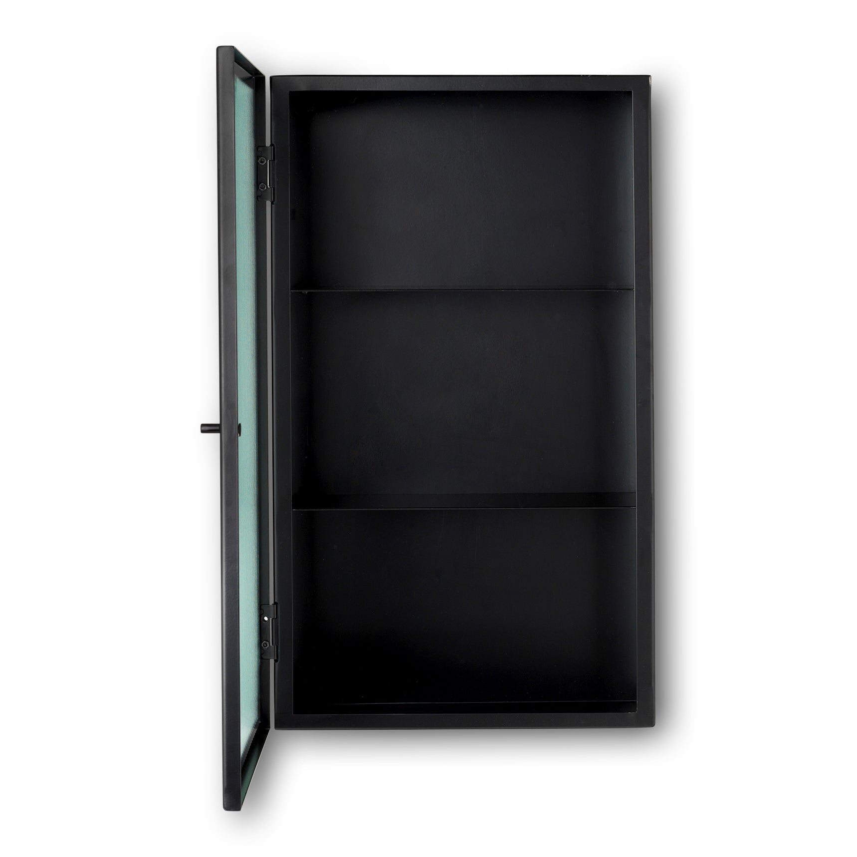 Max. draagvermogen 5 kg. Inclusief twee metalen planken. Hij kan aan twee kanten worden opgehangen, dus de deur kan op beide manieren open. Beugel en schroeven voor wandmontage inbegrepen.