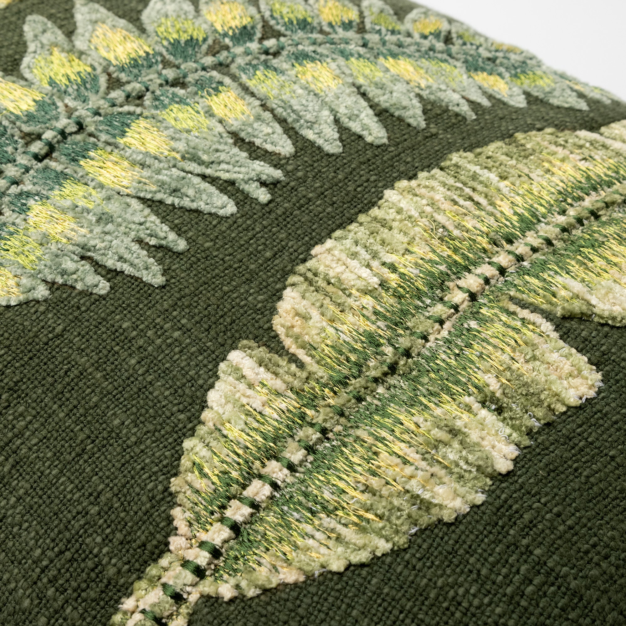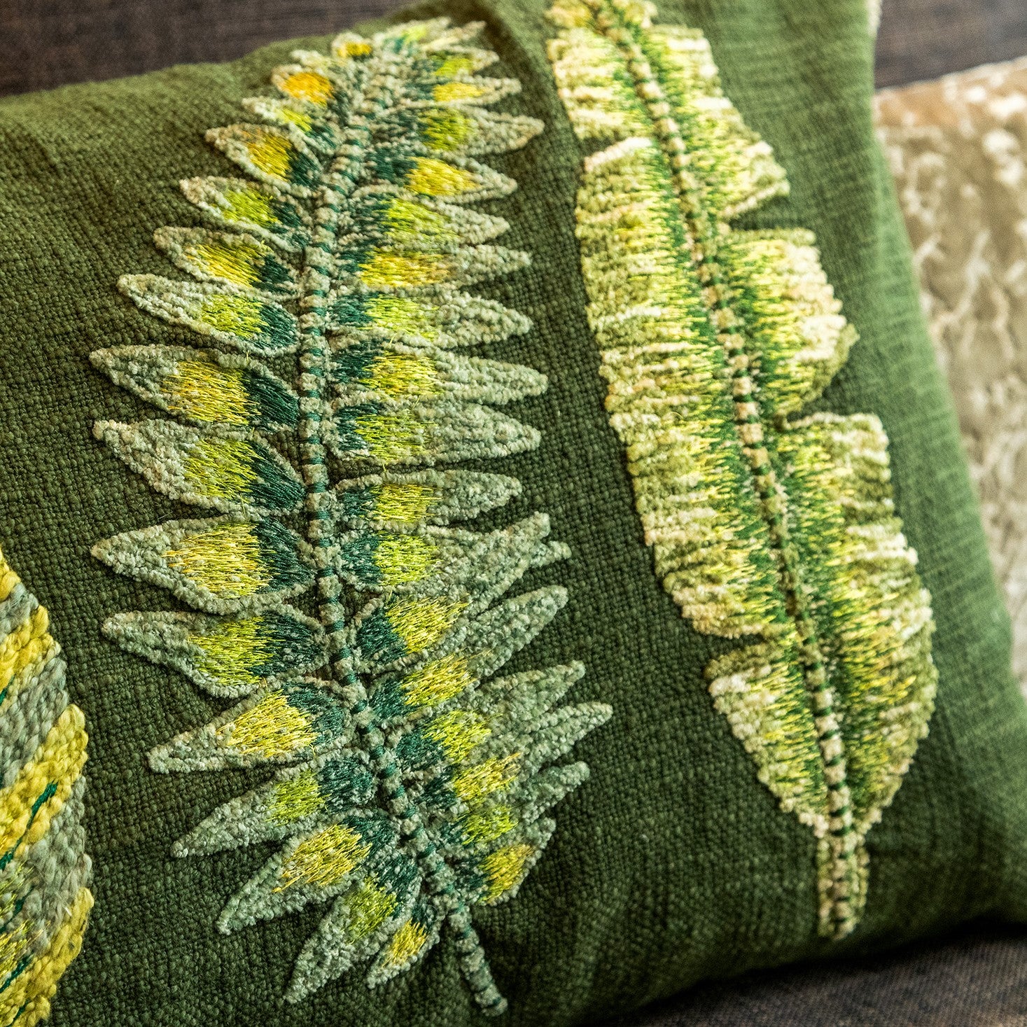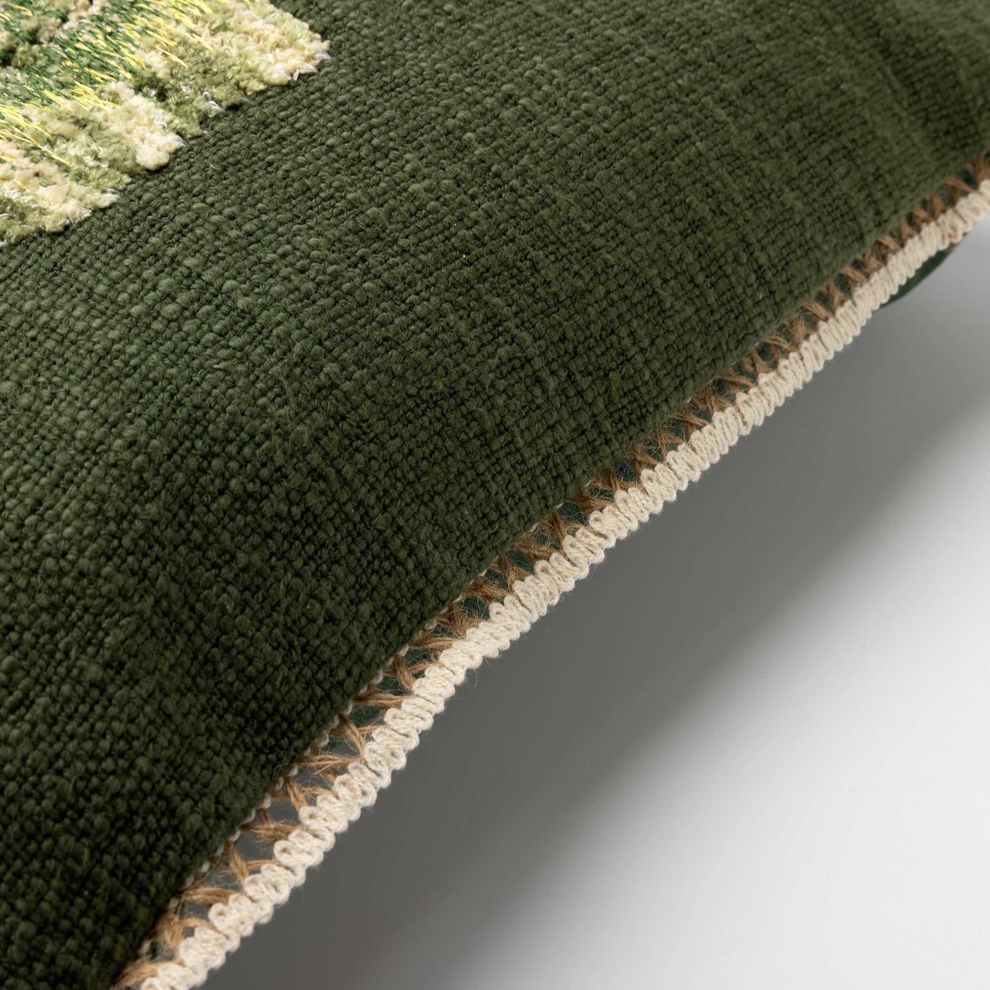 - Het kussen is gemaakt van katoen en heeft een hand geborduurde afwerking