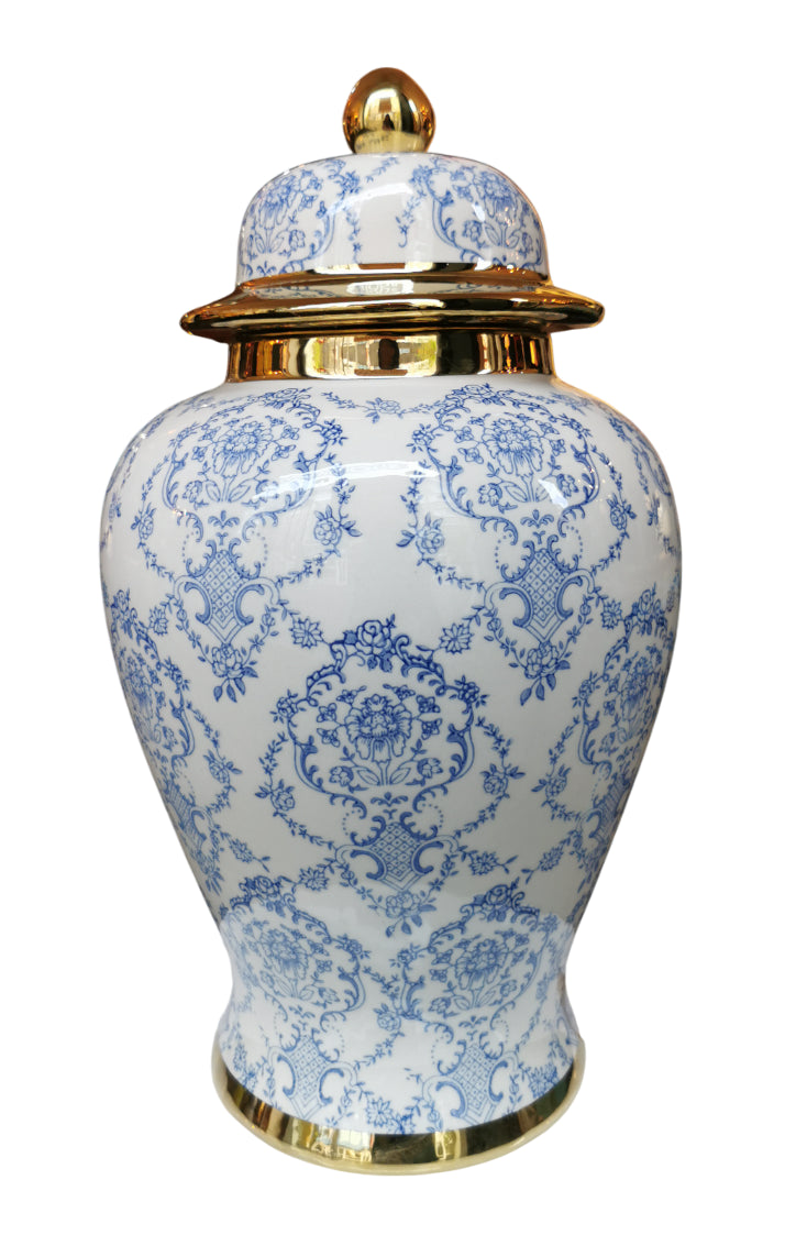 Fine Asianliving Chinese Gemberpot Blauw Wit Goud