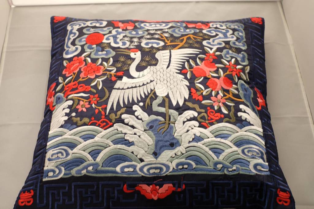Fine Asianliving Chinese Kussen Volledig Geborduurd Navy Kraanvogel