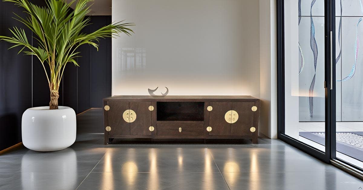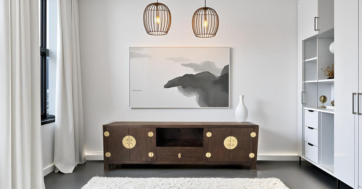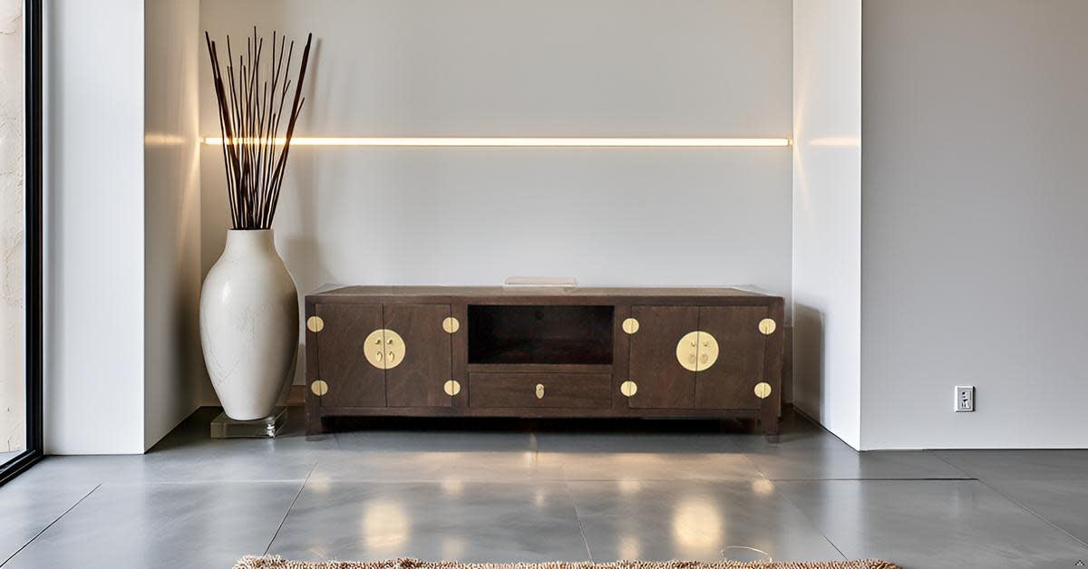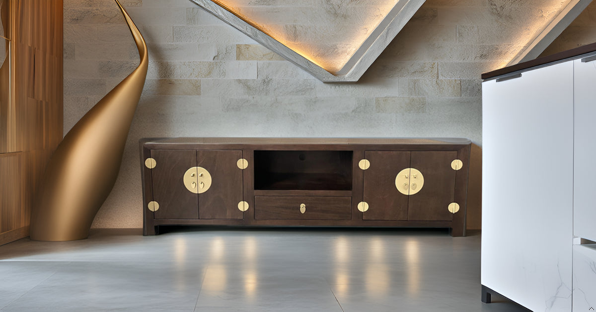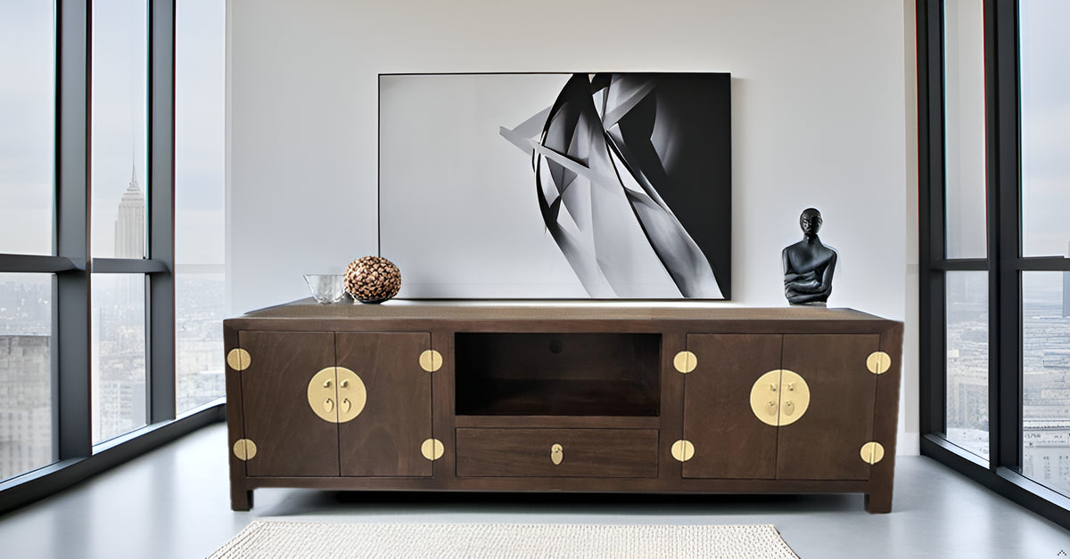 Fine Asianliving Chinese TV Kast Bruin Handgevlochten