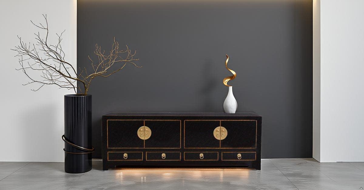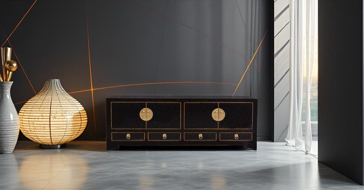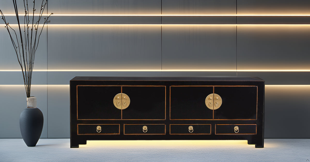 Chinese TV Kast Onyx Zwart - Orientique Collection B130xD40xH45cm