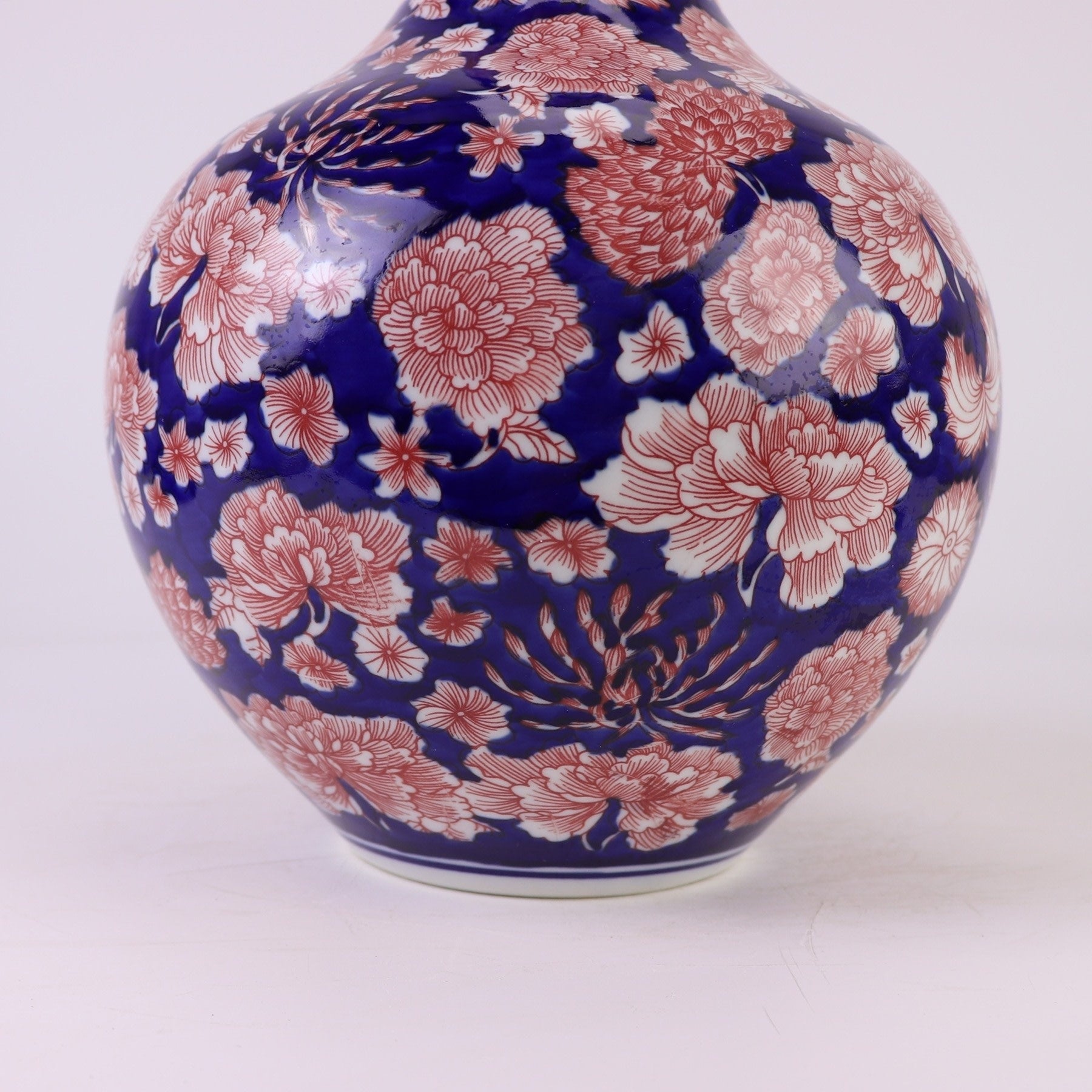 Fine Asianliving Chinese Vaas Porselein Blauw Rood