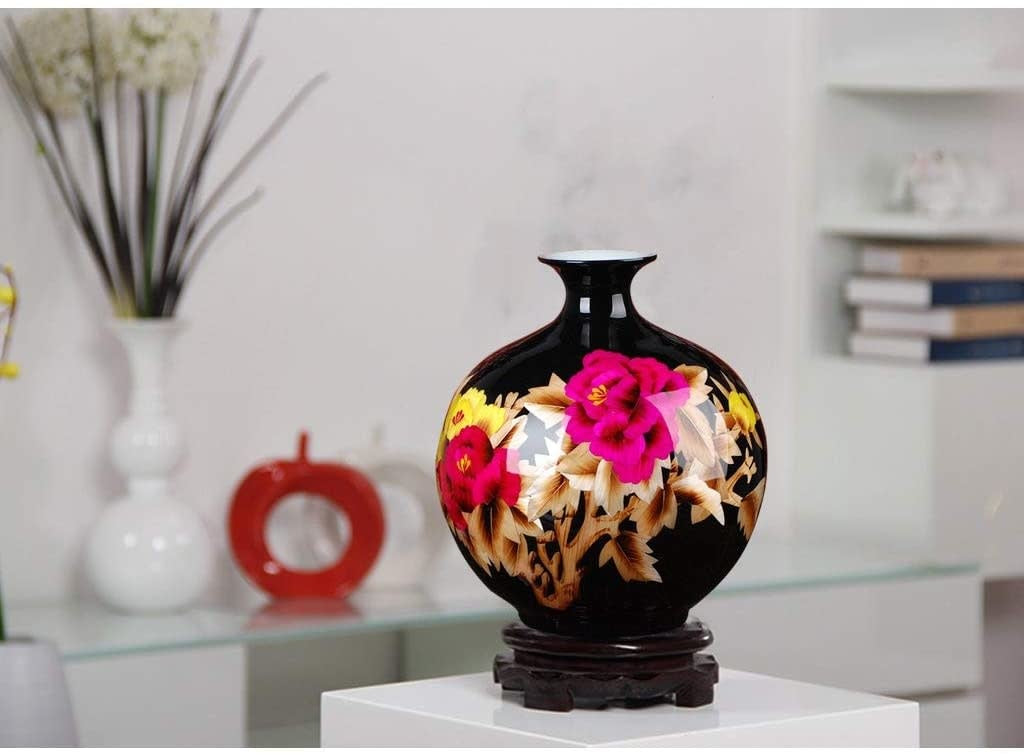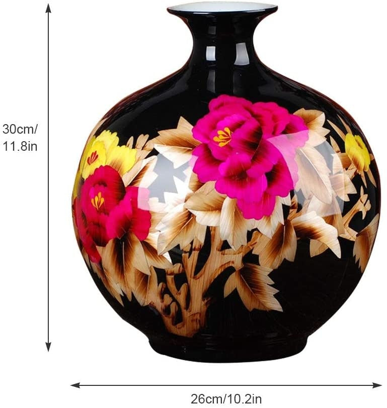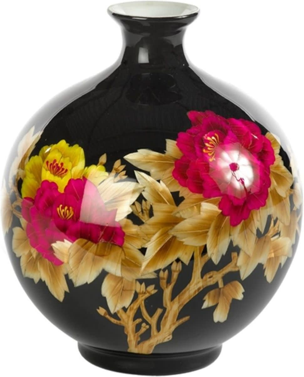 Fine Asianliving Chinese Vaas Porselein Handgemaakt Pioenrozen Zwart